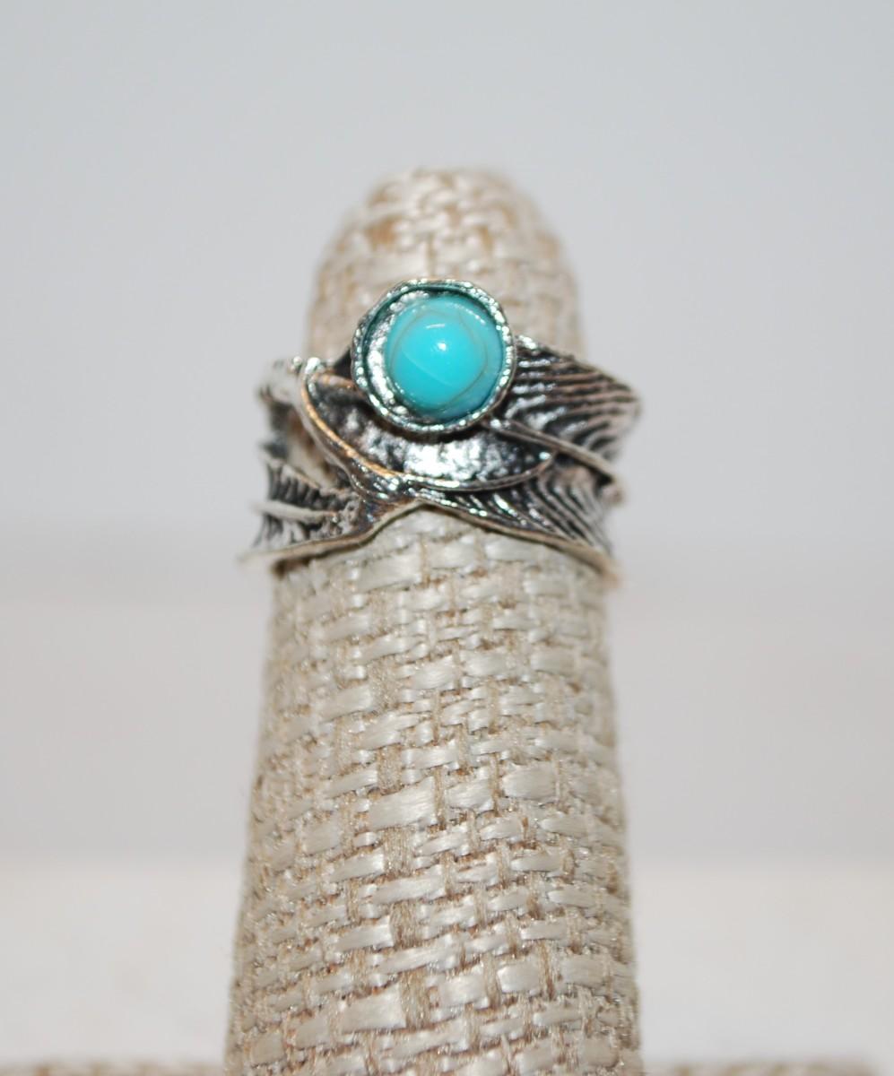 Size 4½ High Set Turquoise-Styled Stone on a "Feather" Design Silver Tone Band (4.5g)