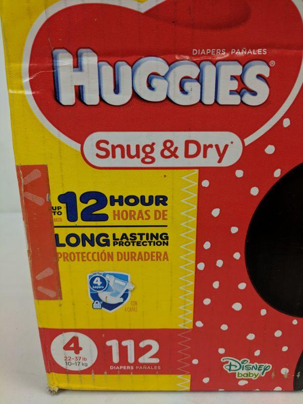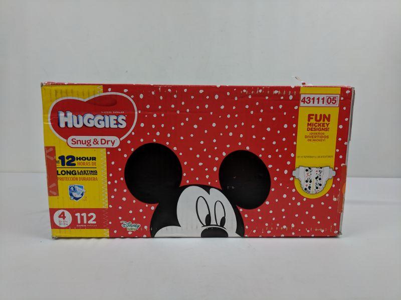 Size 4 Huggies Snug & Dry, 112 Diapers, Disney Baby, 22-37 lbs - New