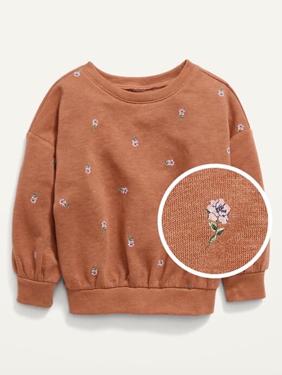 Size 4T - Old Navy Drop-Shoulder Fleece Sweatshirt in Brown Ditsy Floral