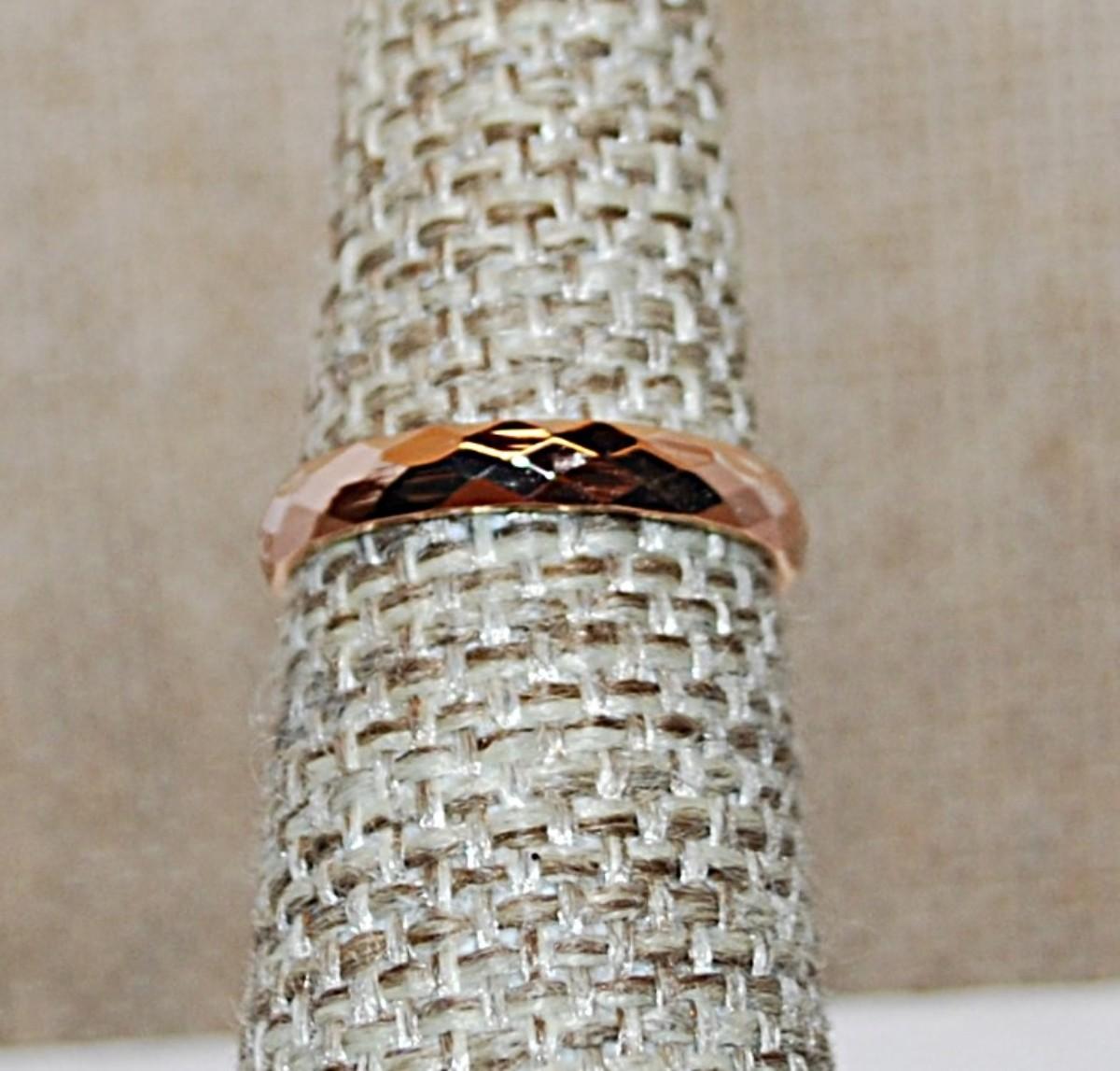 Size 5 Beveled Titanium Infinity Stainless Steel Ring on a ROSE GOLD Band (1.3g)