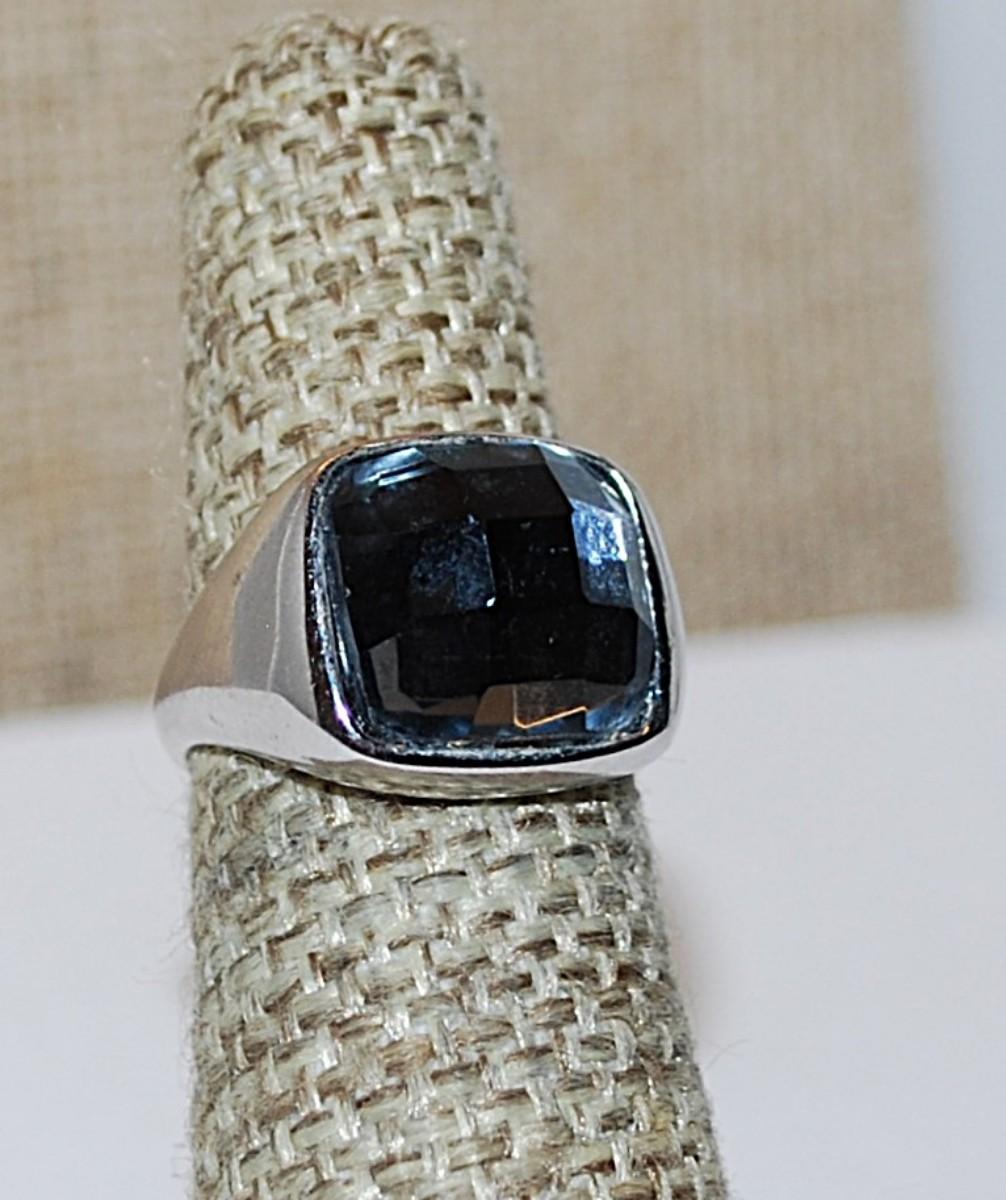 Size 5 Black Square Beveled Translucent Glass Stone RING with Silver Tone Solid Band (6.9g)
