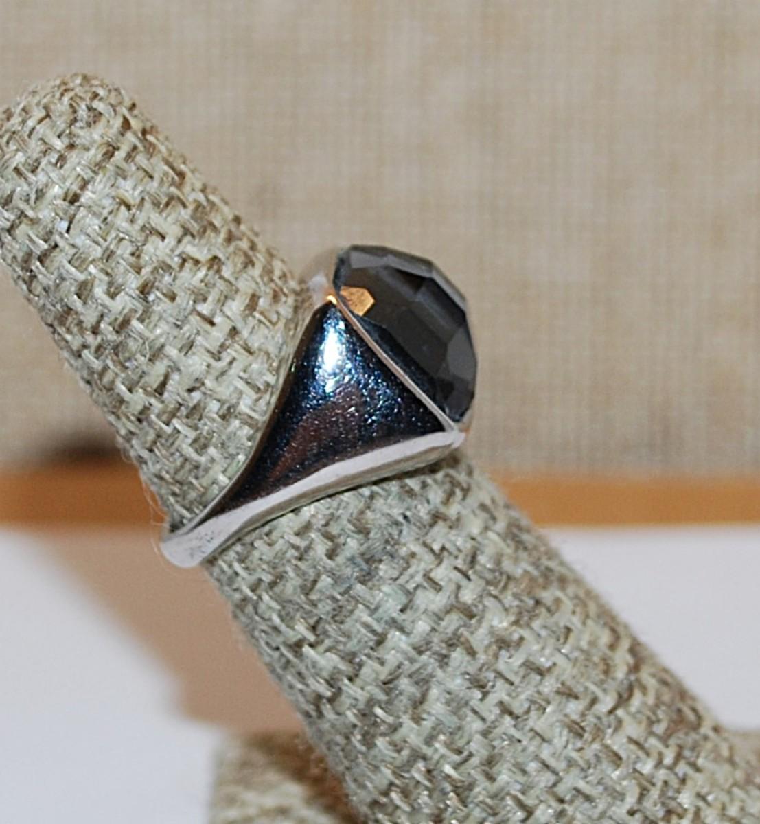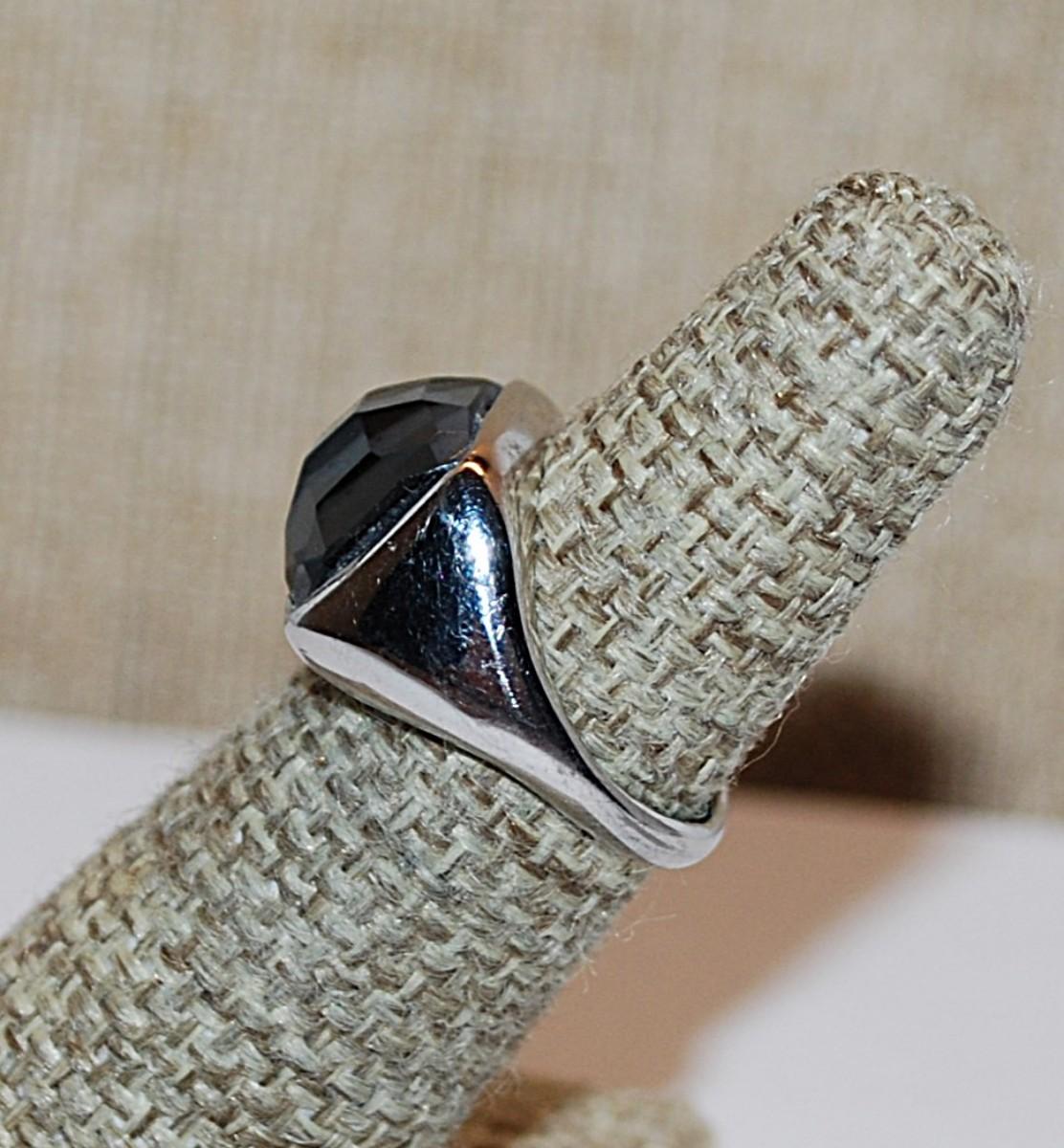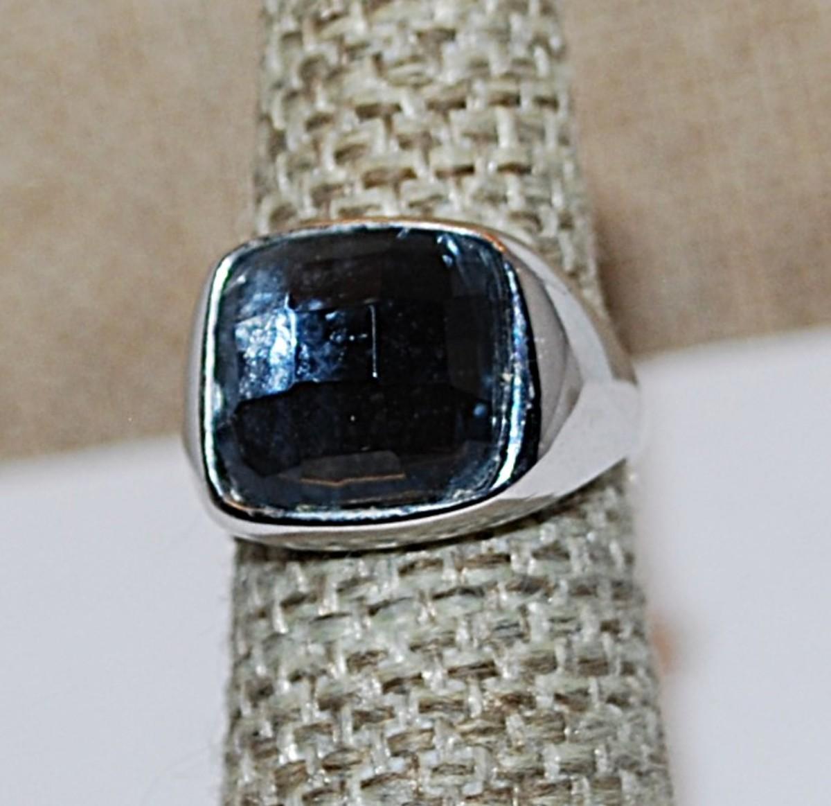 Size 5 Black Square Beveled Translucent Glass Stone RING with Silver Tone Solid Band (6.9g)