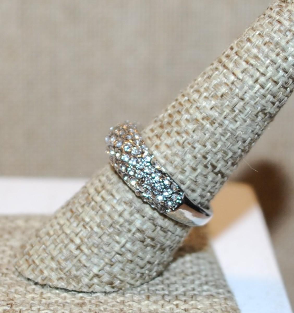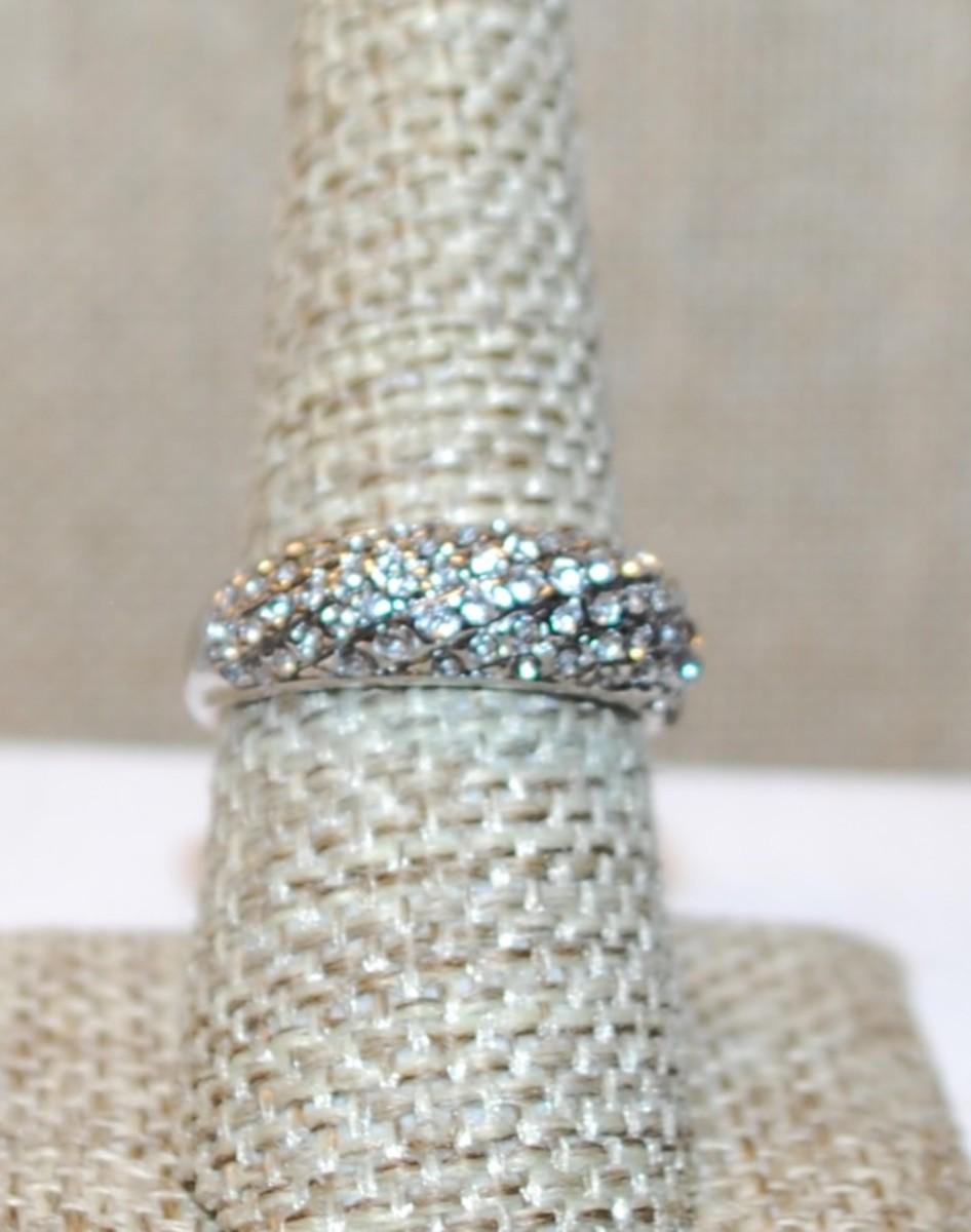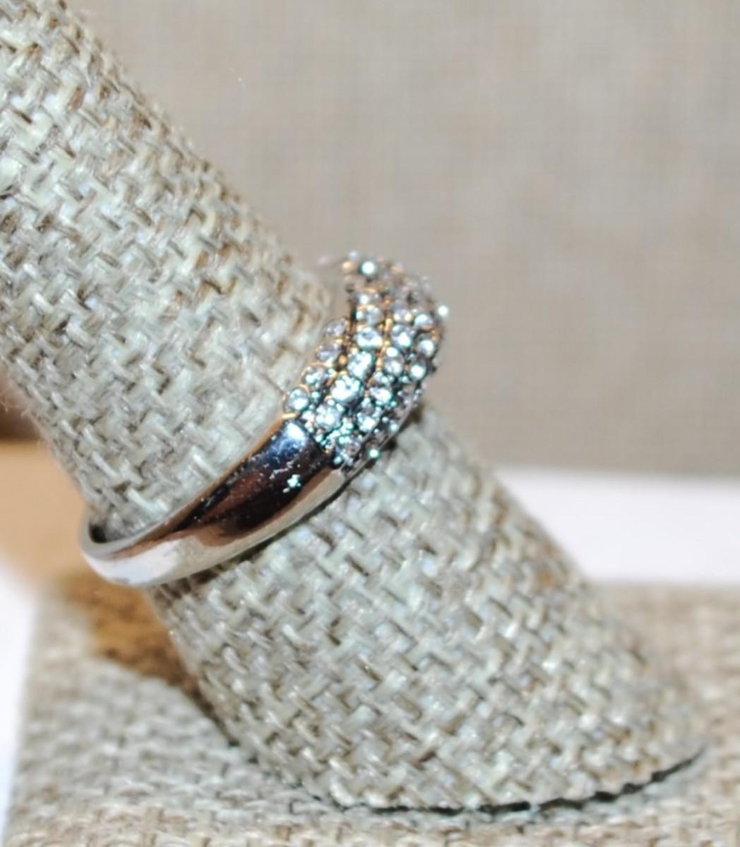 Size 5 Curved Setting Ring with "Waves" of Small Accent Stones on a Silver Tone Band (3.3g)