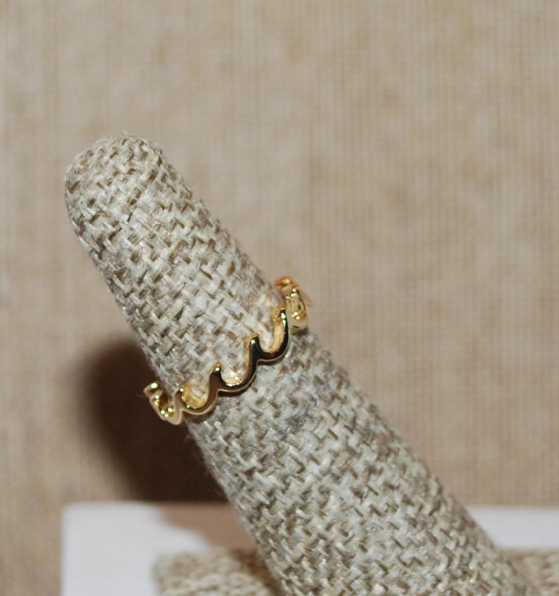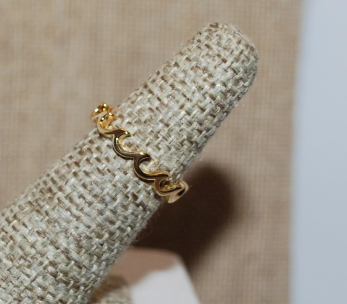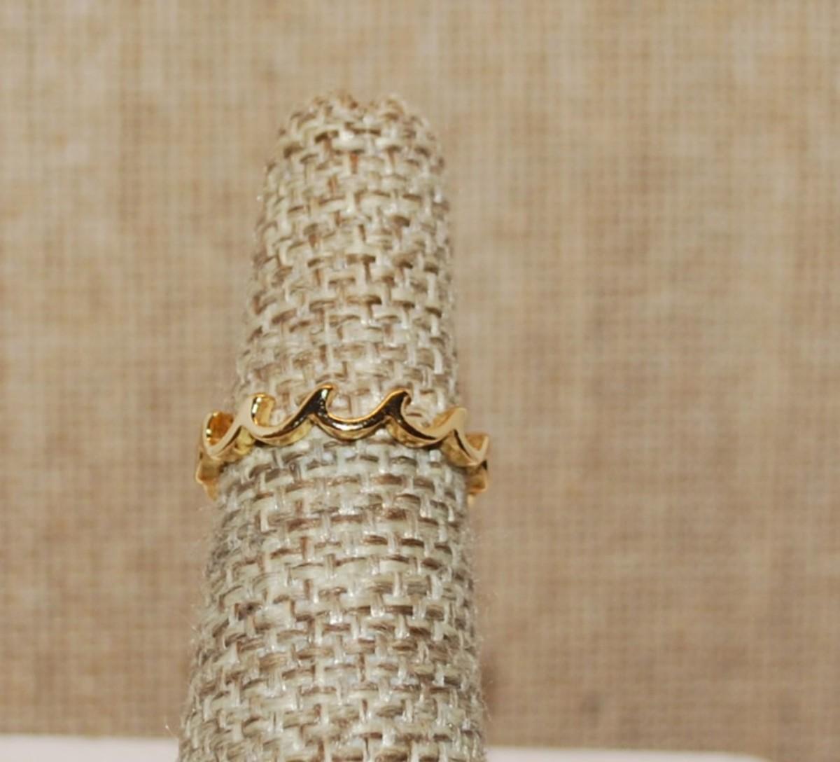 Size 5 Delicate Infinity Style "Ocean Waves" No Stones Ring on a Gold Tone Band (1.3g)