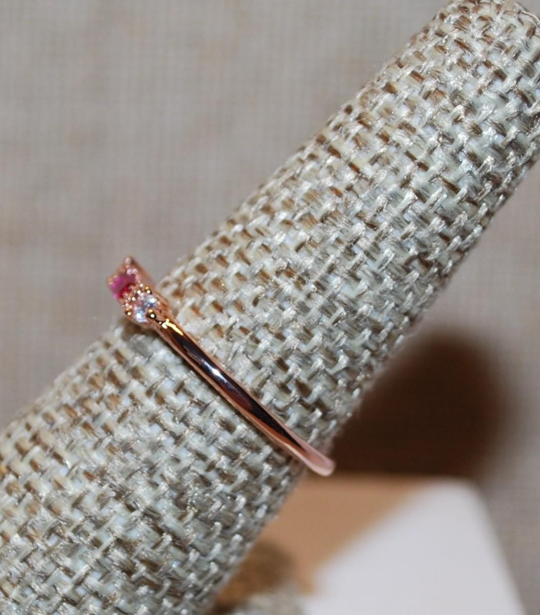 Size 5 ½ Delicate Red Rectangle Stone Ring with Small Side Accents on a Rose Gold Band (1.2g)