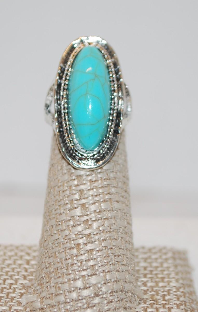 Size 5¾ Large Oval Turquoise-Styled Ring with Silver Tone Rope Surrounds (5.6g)