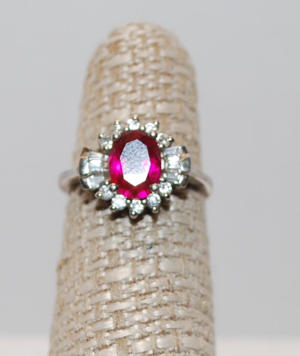Size 5¼ Light Ruby Red Center Stone with Clear Stones Surrounds (3.0g)