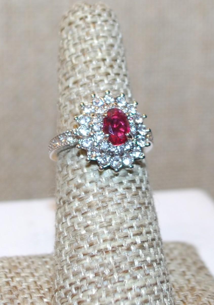Size 5½ Oval Red Stone Ring in a Glitter Starburst Setting with a Silver Tone Band (4.7g)