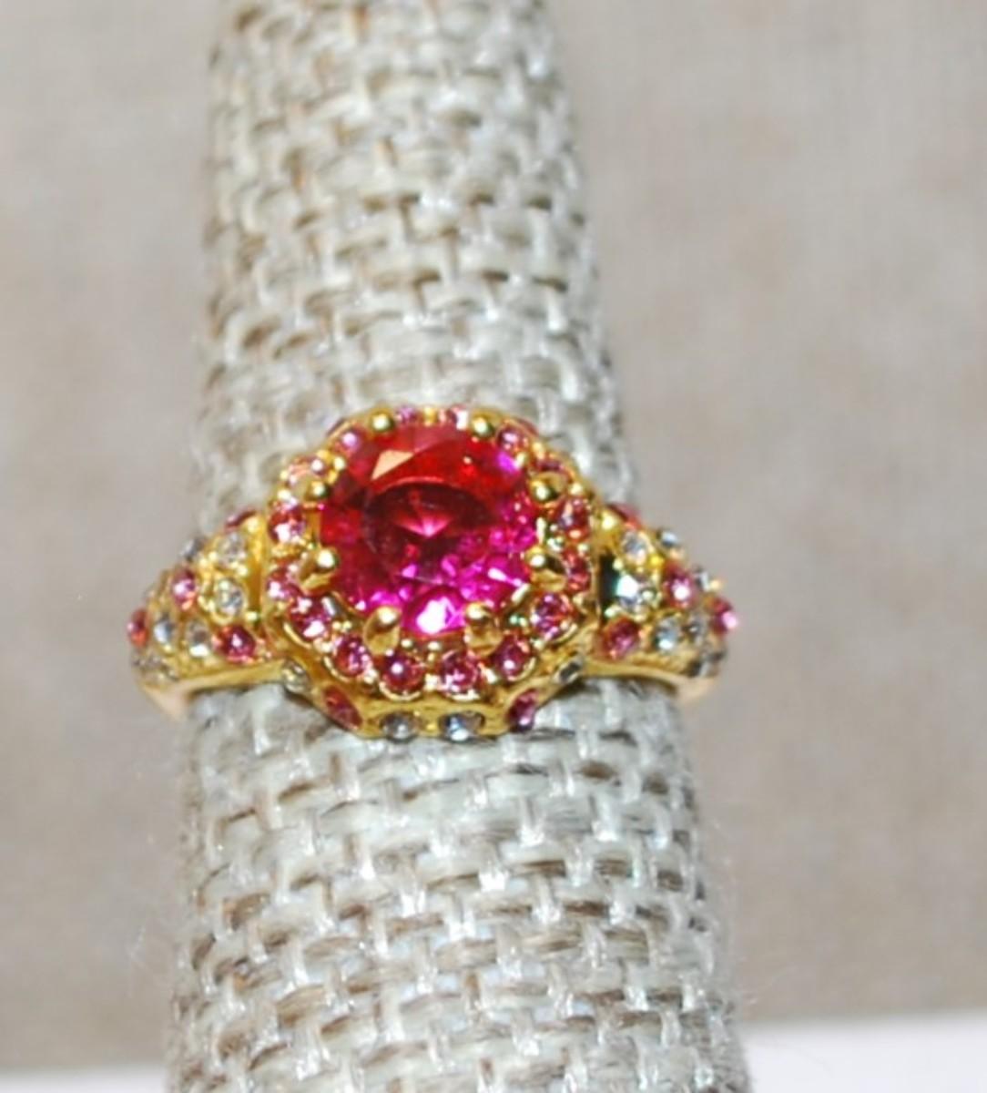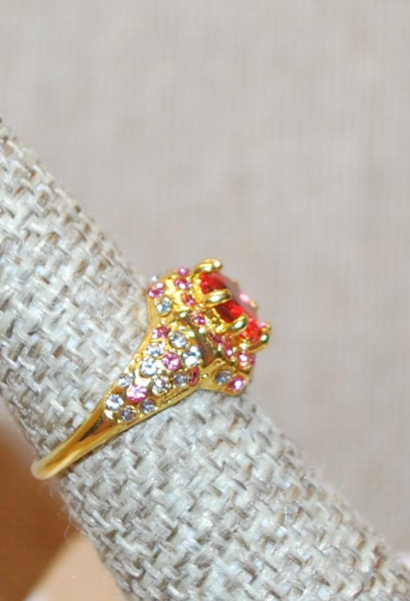 Size 5½ Round Red Stone Ring with Pink & White All Surround Stones on a Gold Tone Band (2.7g)
