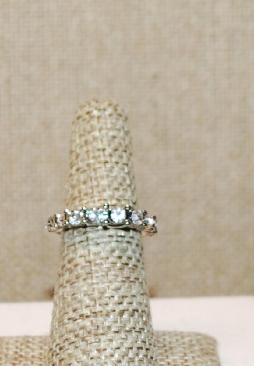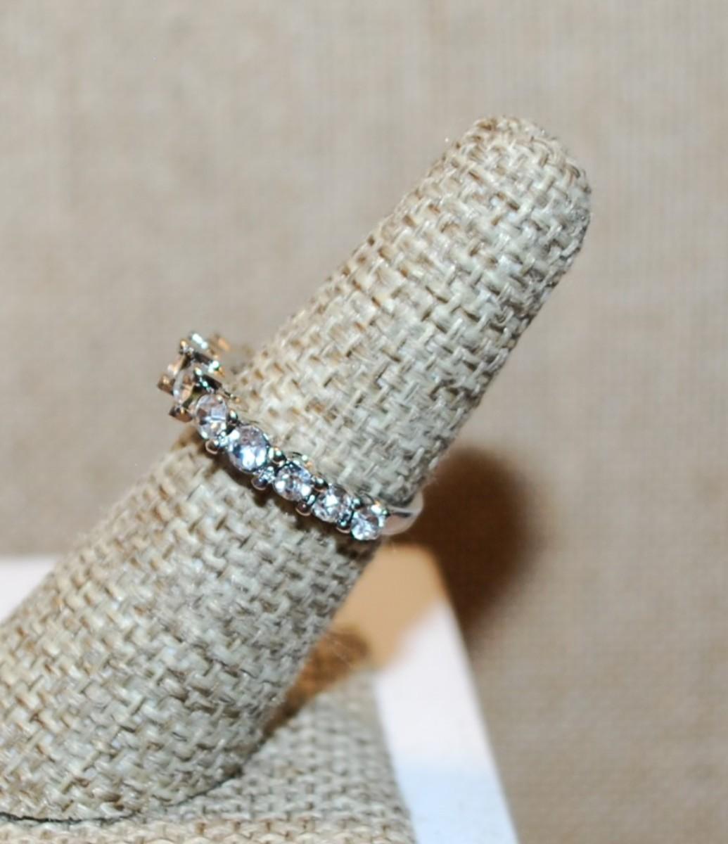 Size 5¼ Row of 11 Clear Stones Ring on a Silver Tone Band (2.8g)