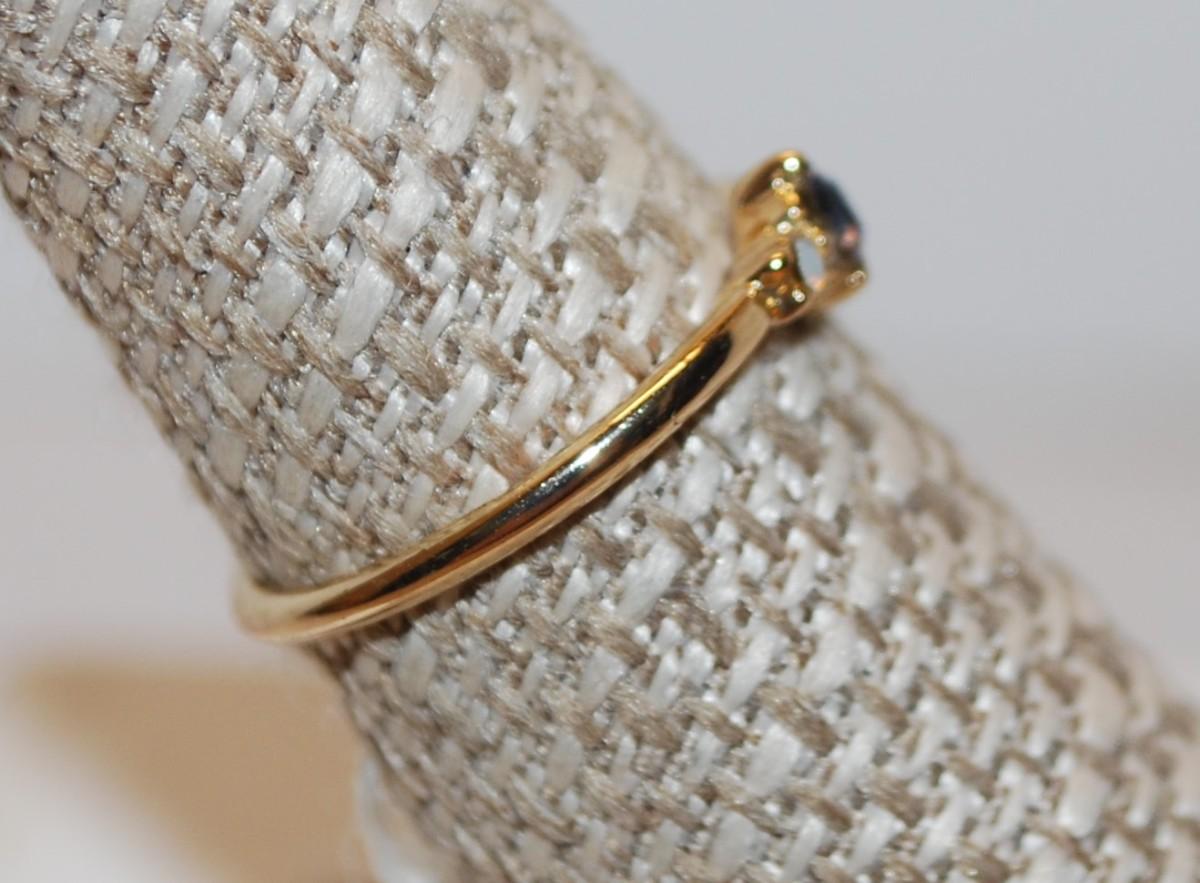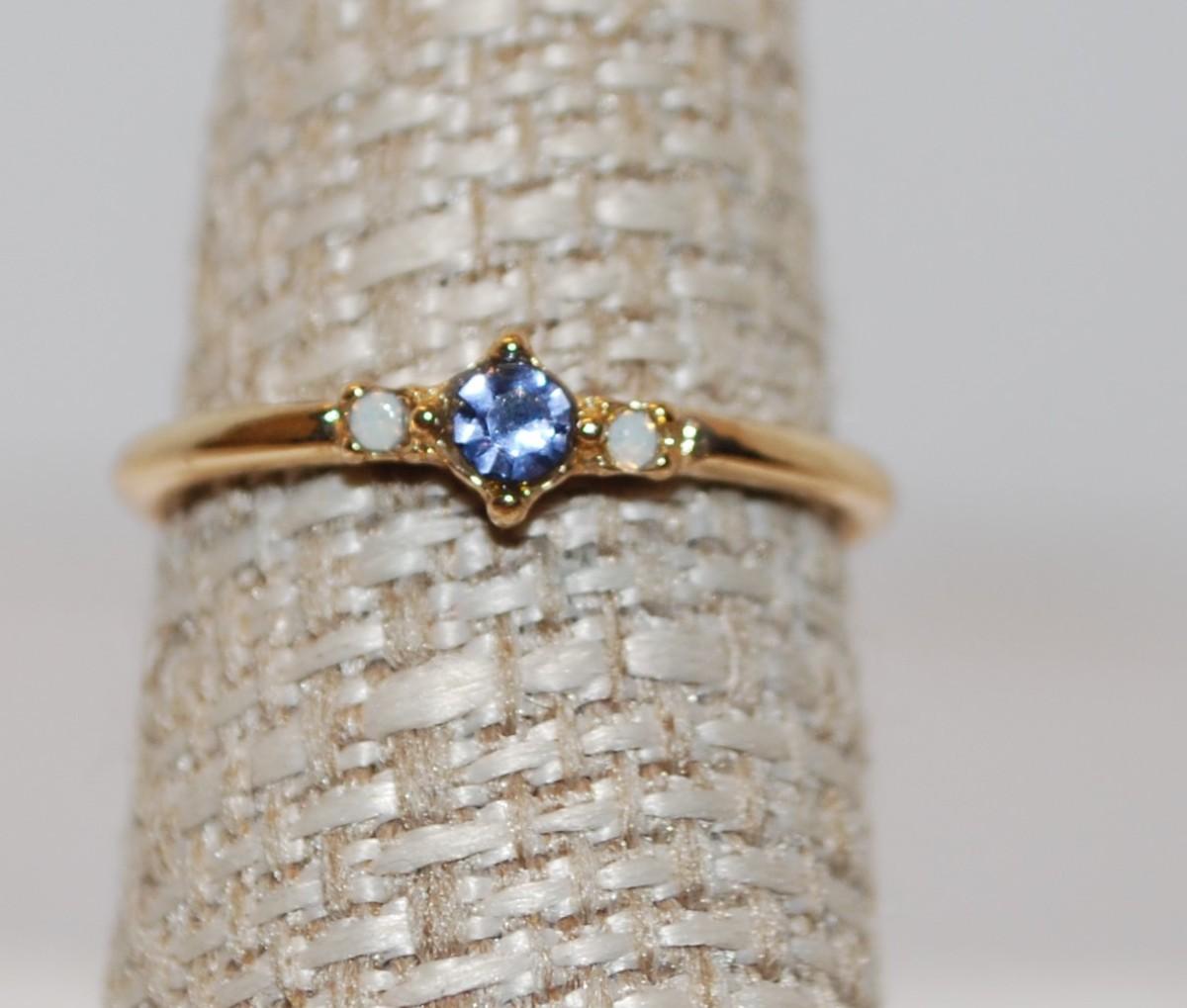 Size 6 ½ Small Round Blue Center Stone with 2 Side Moonstone Style Accents Ring (1.2g)