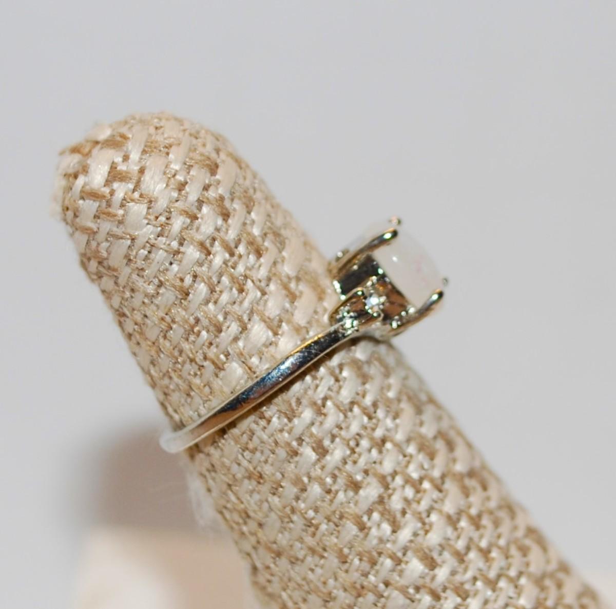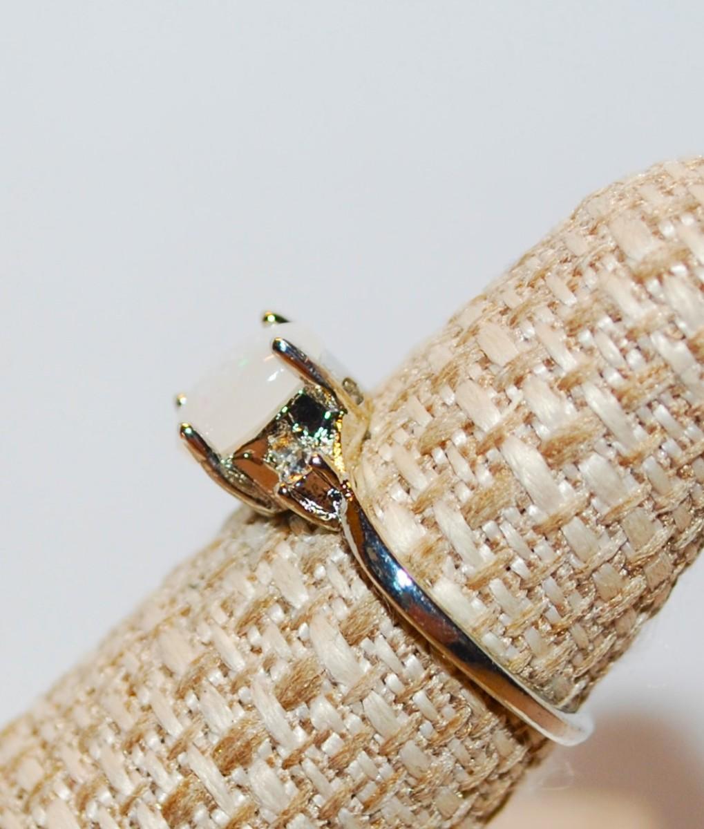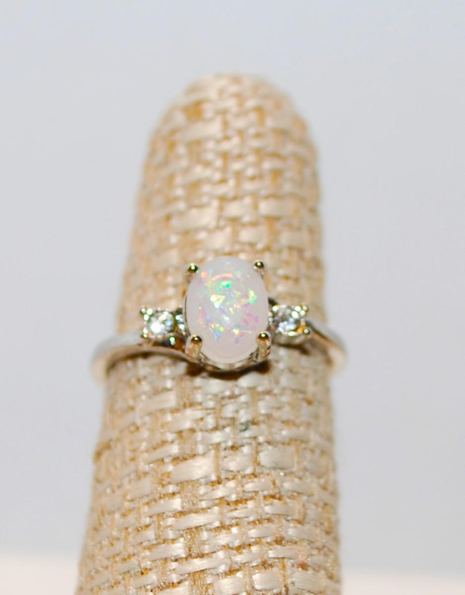 Size 6½ Oval Cut Lab-Style Opal Ring with 2 Clear Accent Stones (3.9g)