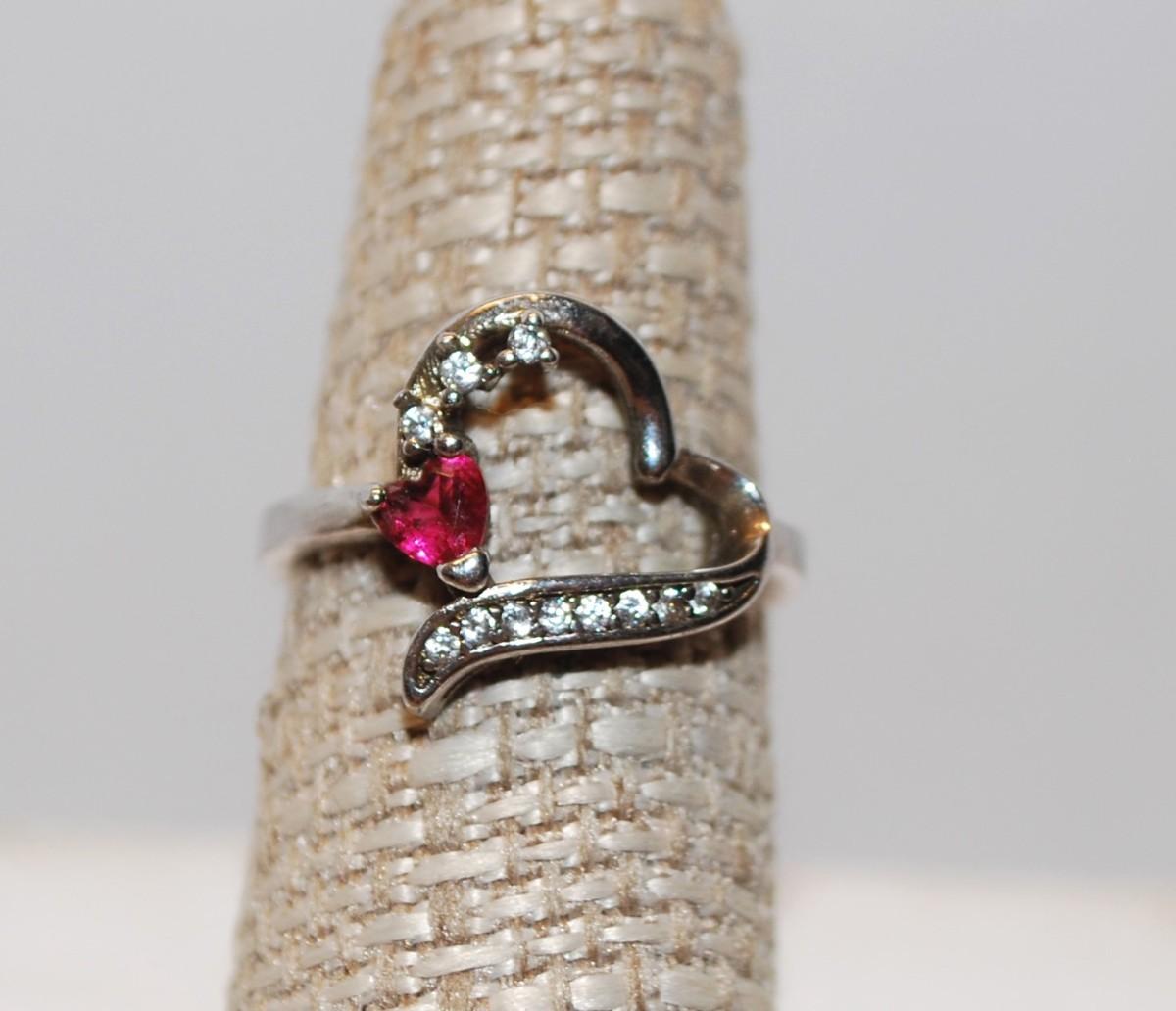 Size 6½ Red Heart Shaped Stone with 11 Accents Stones on a Slurry Shaped Band (2.6g)