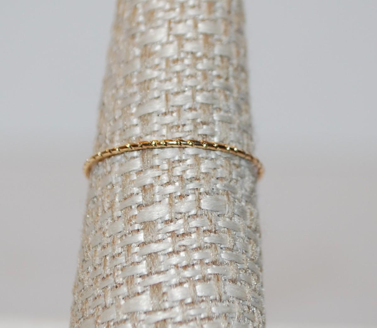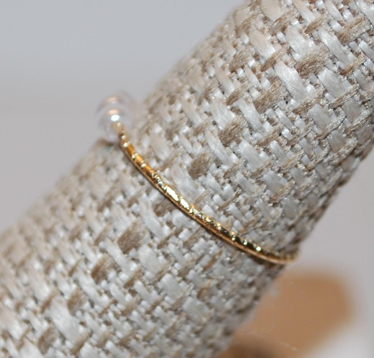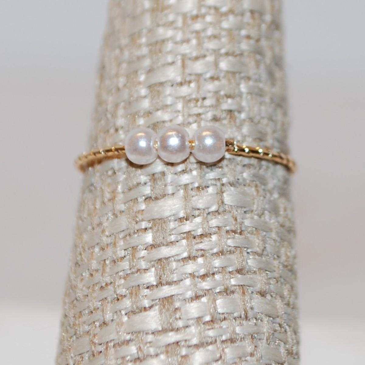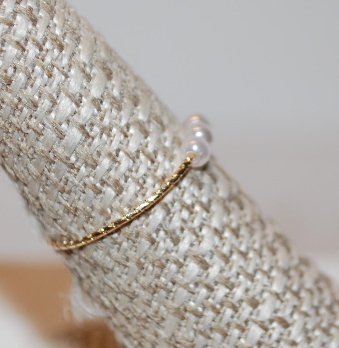 Size 6¾ 3 Moveable Small Pearl Style Ring on a Thin Gold Tone Rippled Band (0.1g)