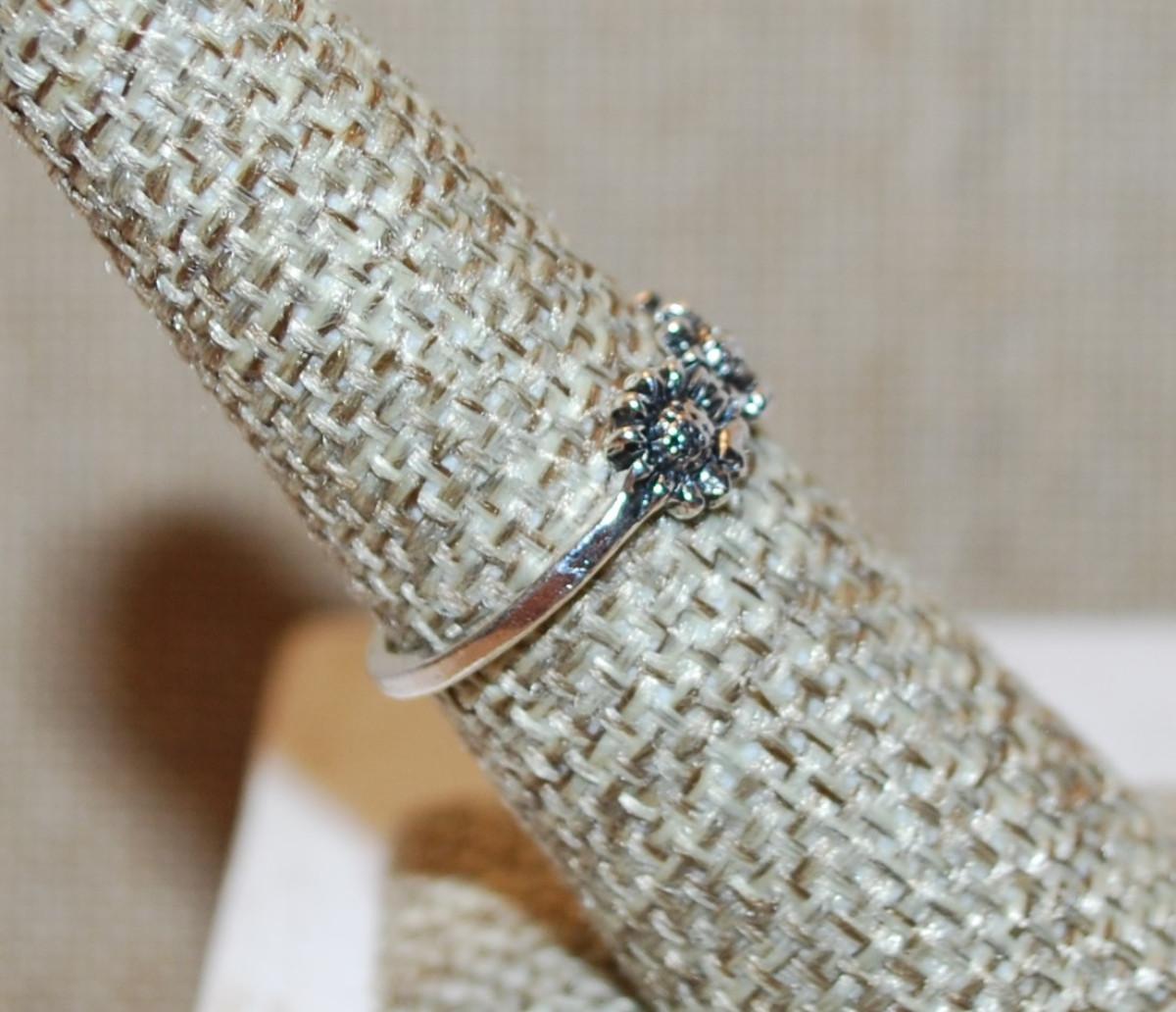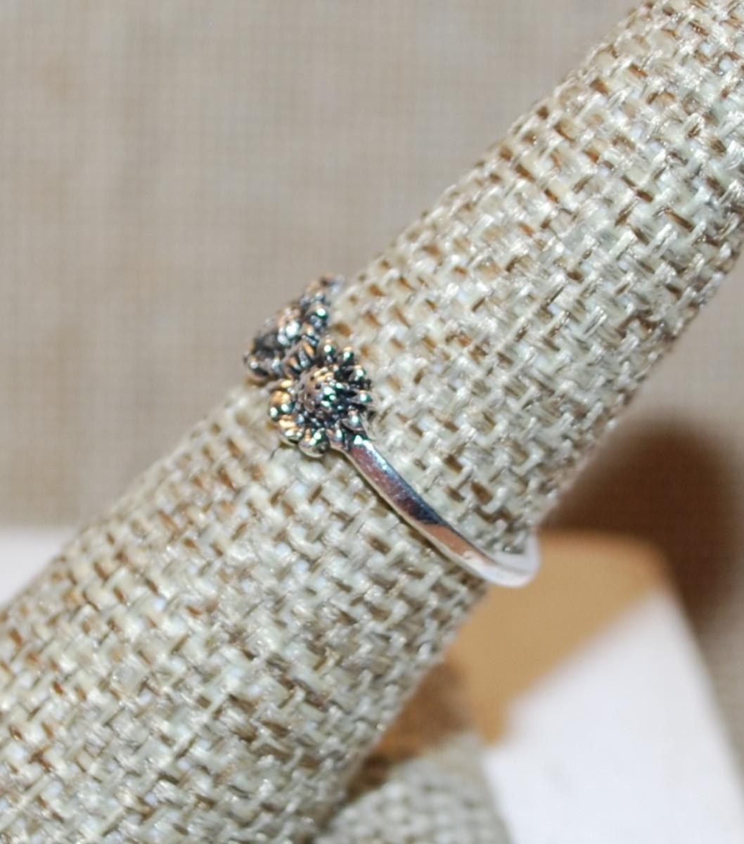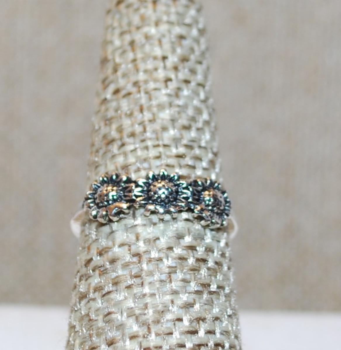 Size 6¼ 3 Silver Sunflowers Ring on a Silver Tone Band (1.4g)