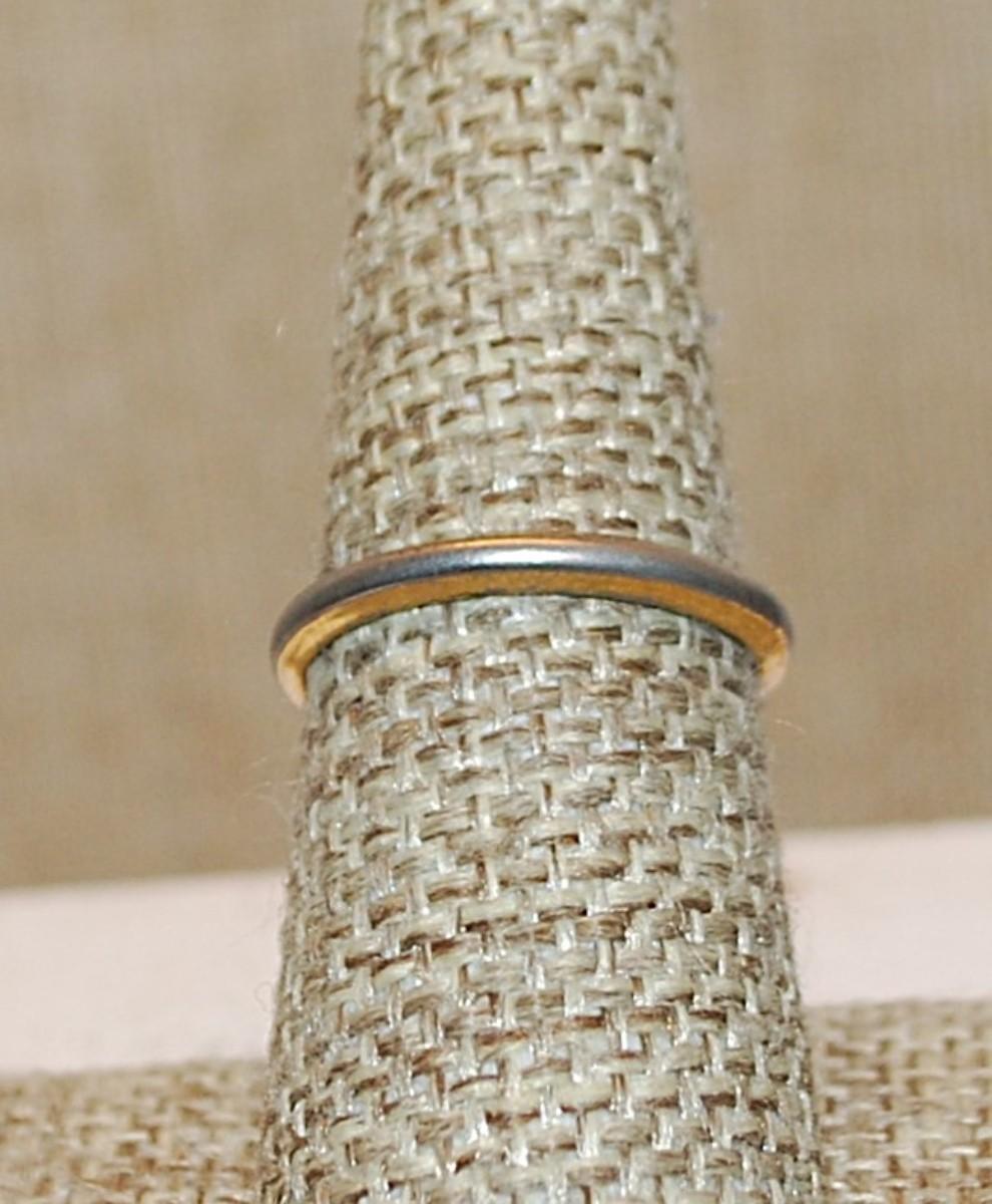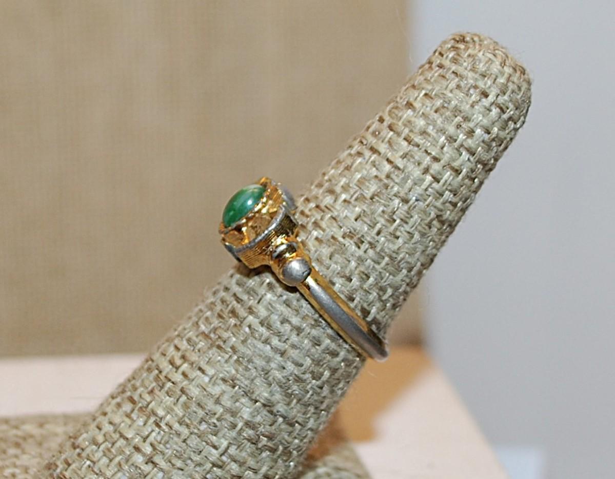 Size 6½ -7½ Vintage Two-Tone Green Cabochon RING - Marked "AVON" - with Inside Wire Expander & 2-Tone Band (3.8g)