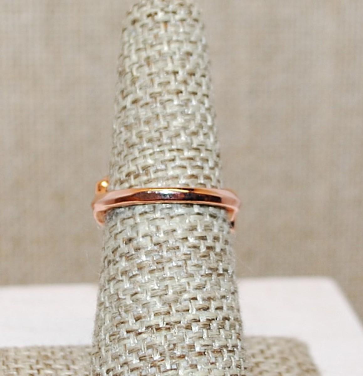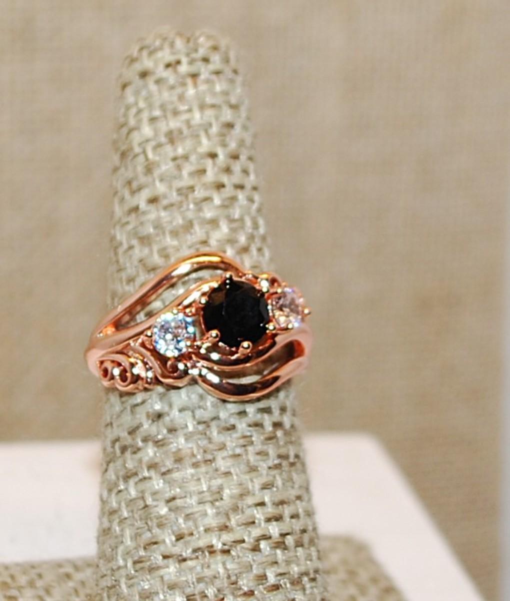 Size 6 Black Beveled Round Main Stone Ring with 2 Side Stones on a ROSE GOLD Band (4.0g)