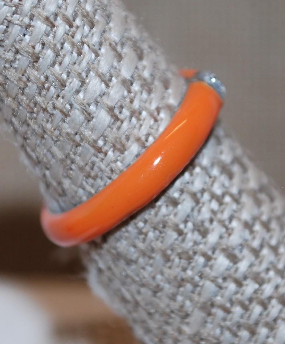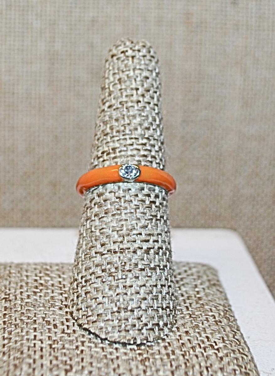 Size 6 Bright ORANGE Enamel Style Ring with Single Round Stone (2.0g)