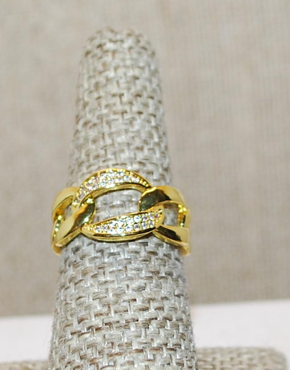 Size 6¾ Chain Link Ring with Small Glitter Stones on an All Gold Tone OPEN Band (3.3g)
