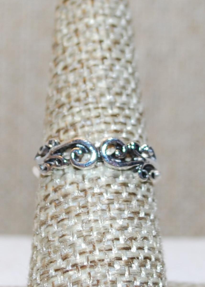 Size 6¼ Dainty Silver Tone Swirls Ring on a Silver Tone Band (0.4g)