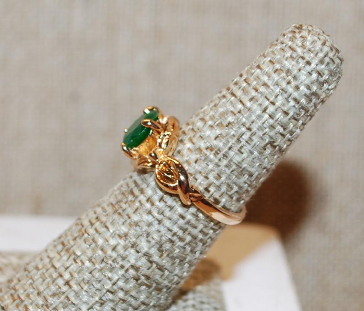 Size 6¼ Deep Green Opaque Round Stone Ring on a Dark Gold Tone Band (2.8g)