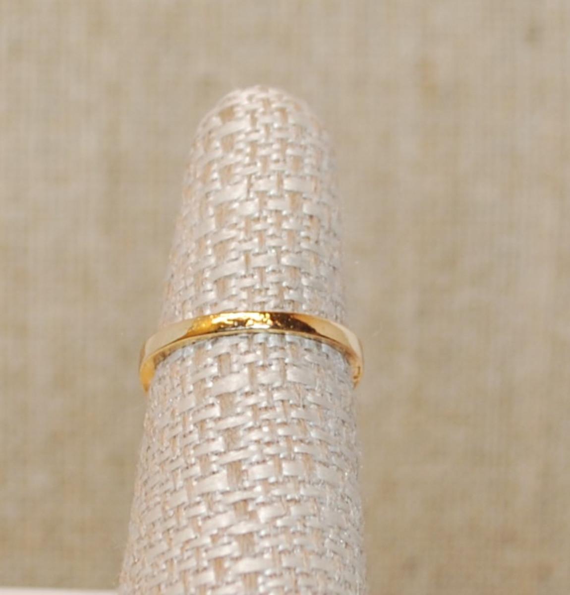 Size 6¾ Deep Purple Round Main Stone Ring with a "V" Clear Stone Accent on a Gold Tone Band (2.7g)