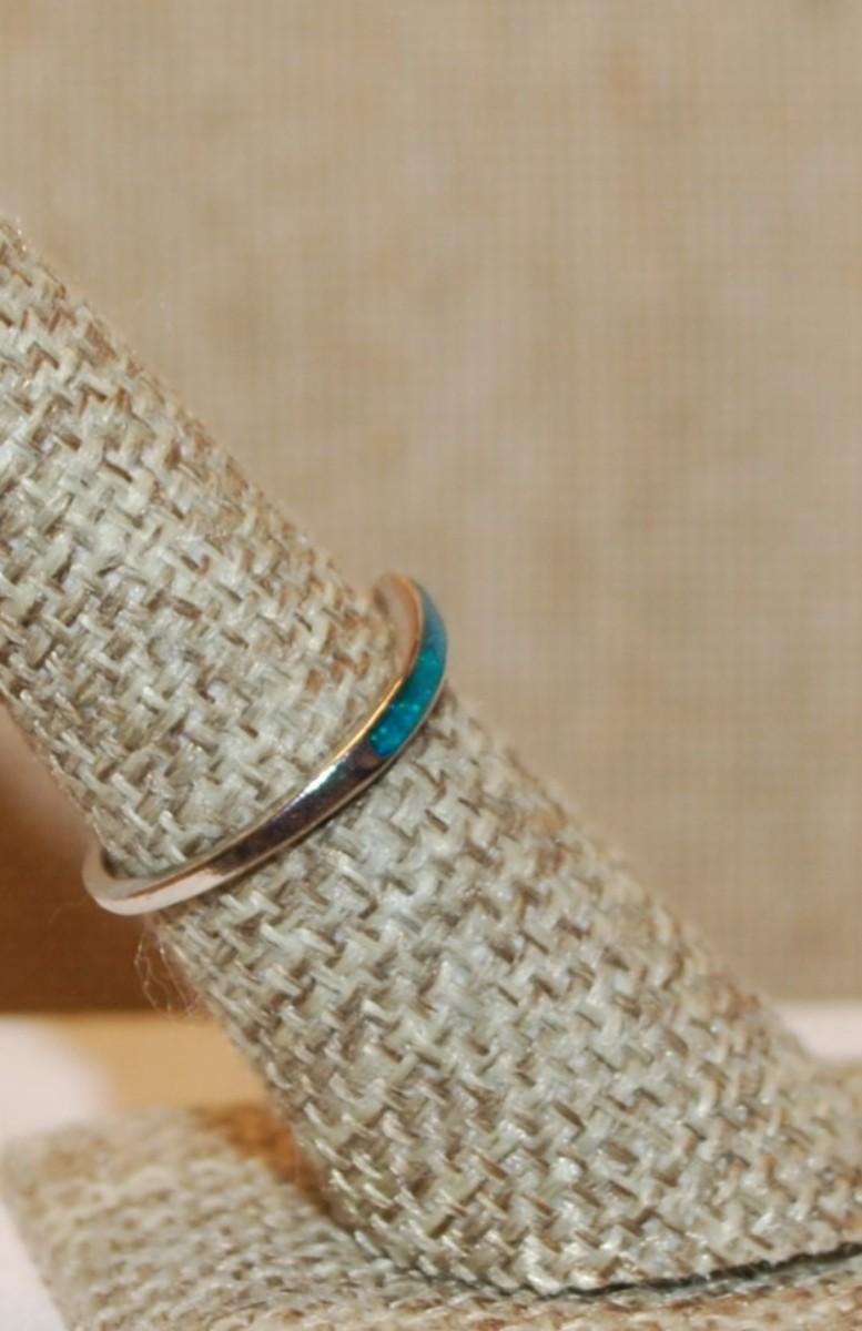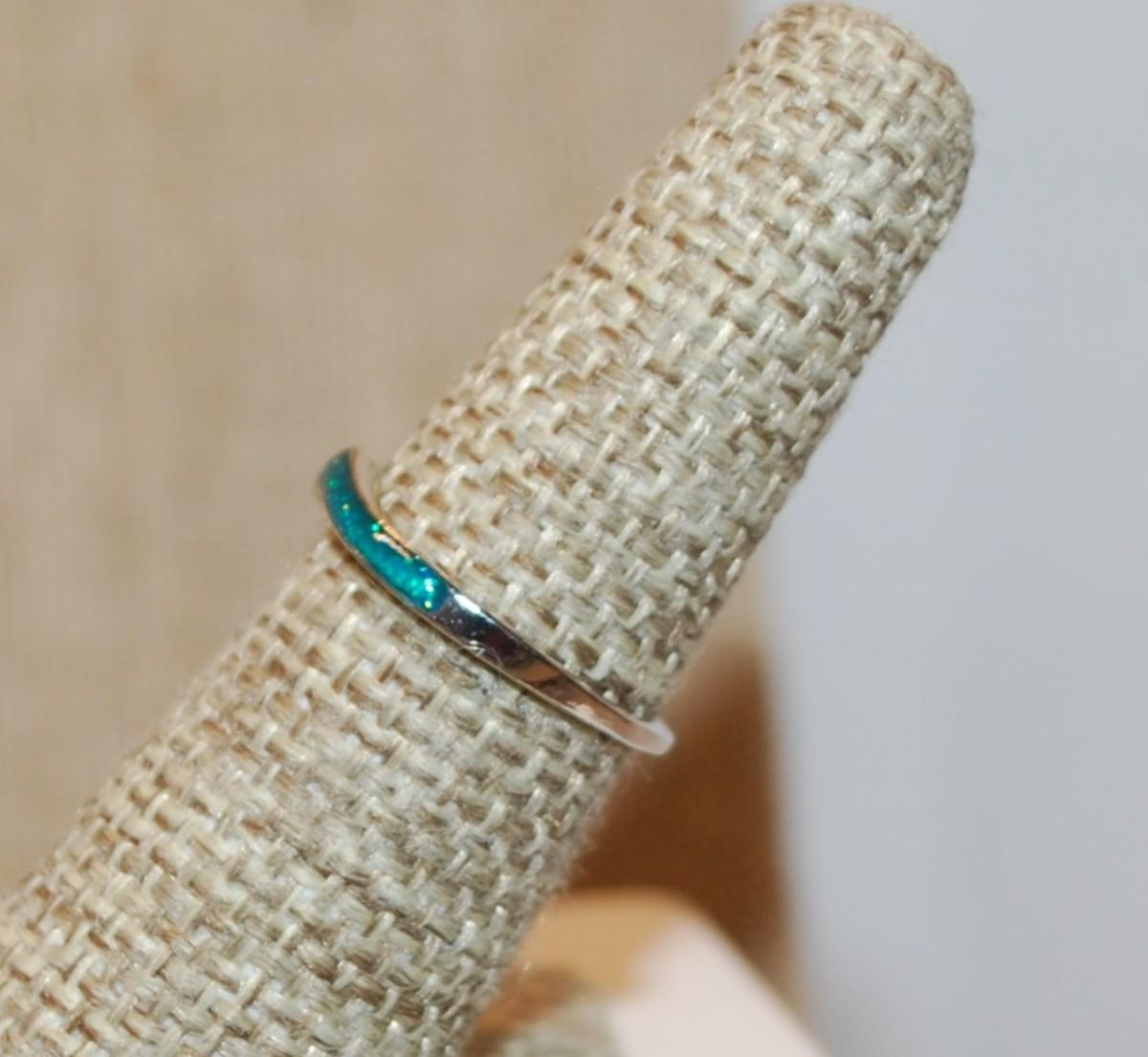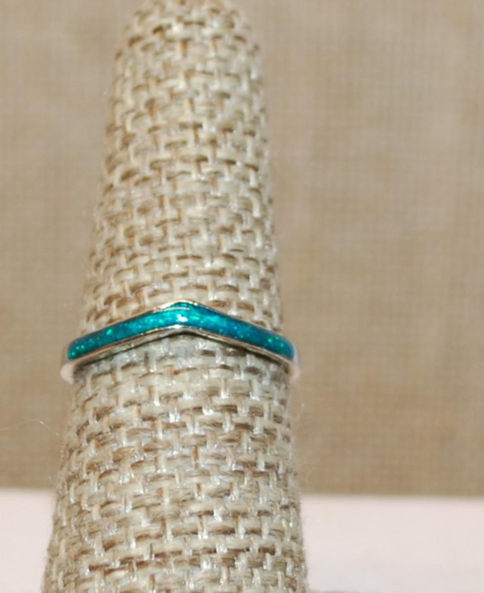 Size 6½ Delicate Aquamarine Enamel "V" Slant Ring on a Silver Tone Band (1.1g)