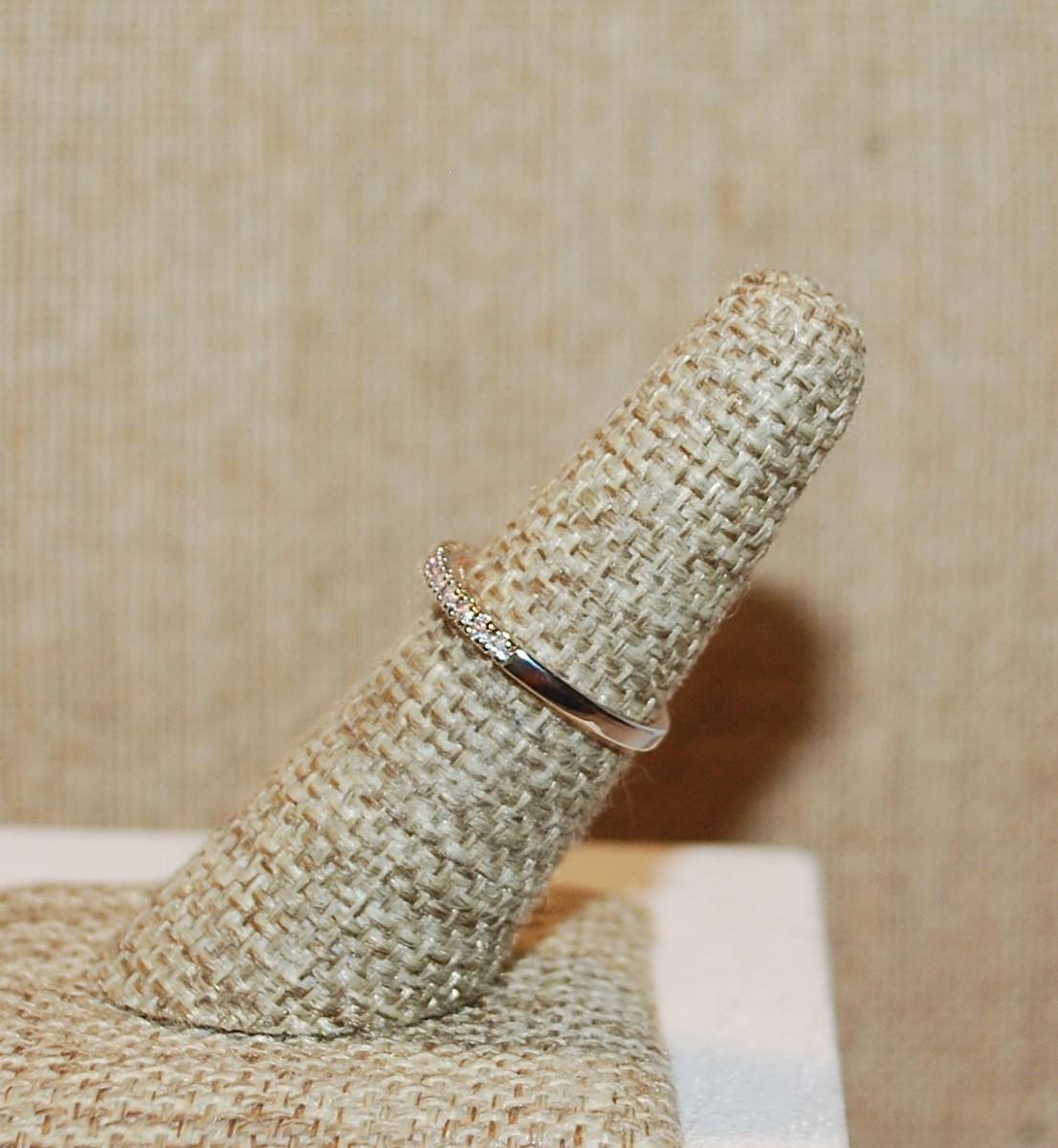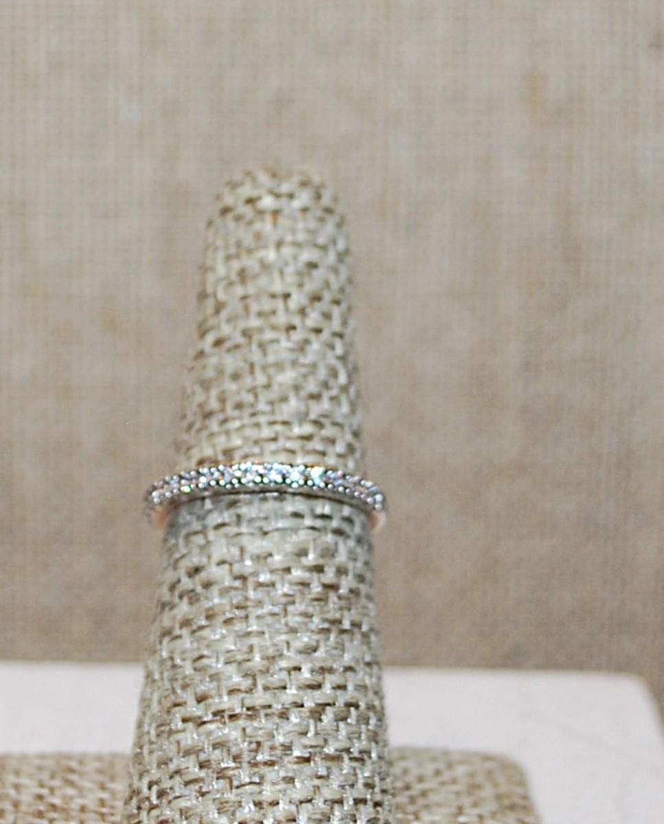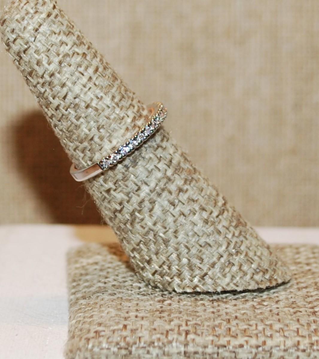 Size 6 Delicate Half Infinity Ring with Single Row of Clear Stones & INSIDE Rose Gold Silver Tone Band (1.7g)