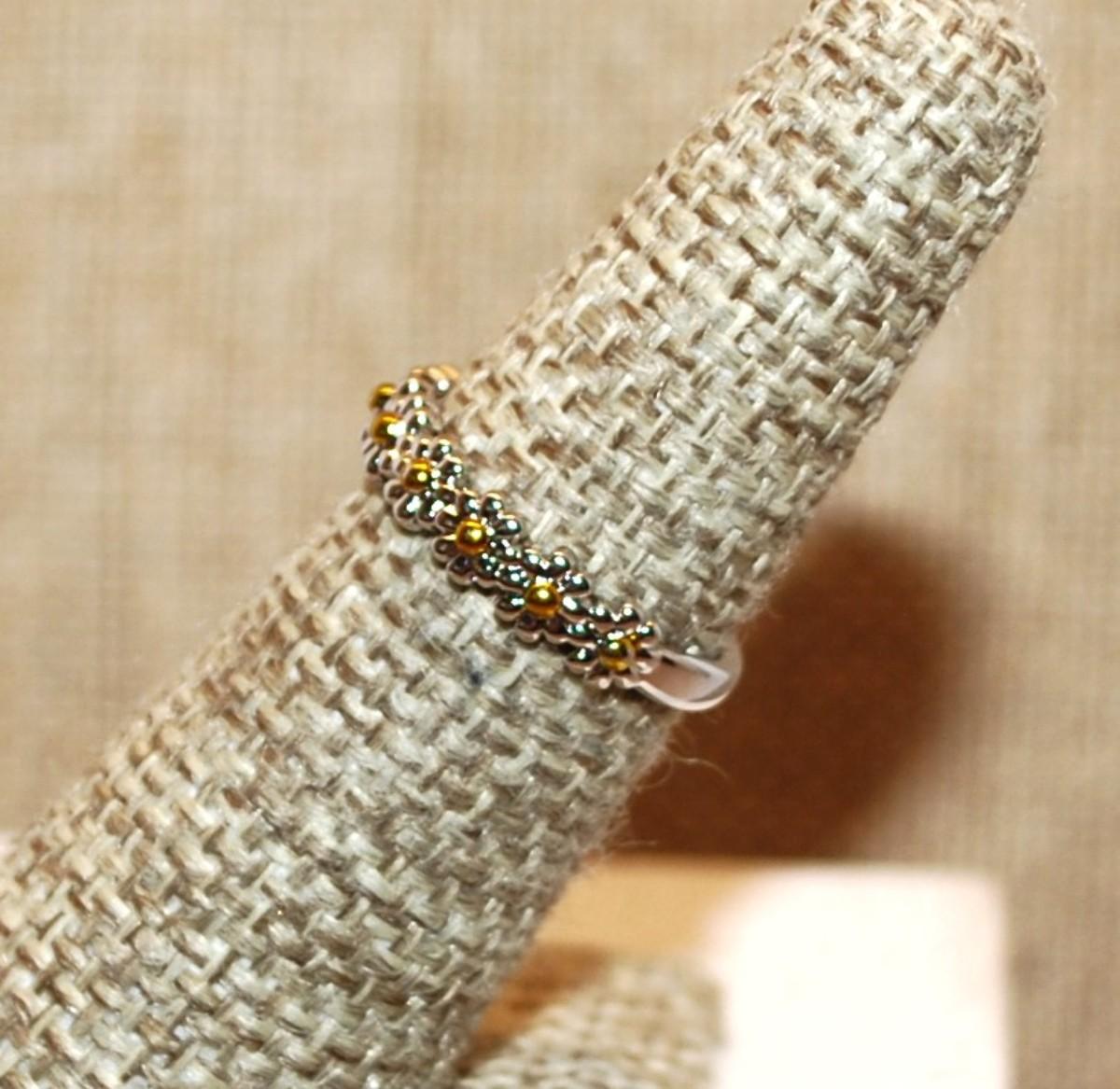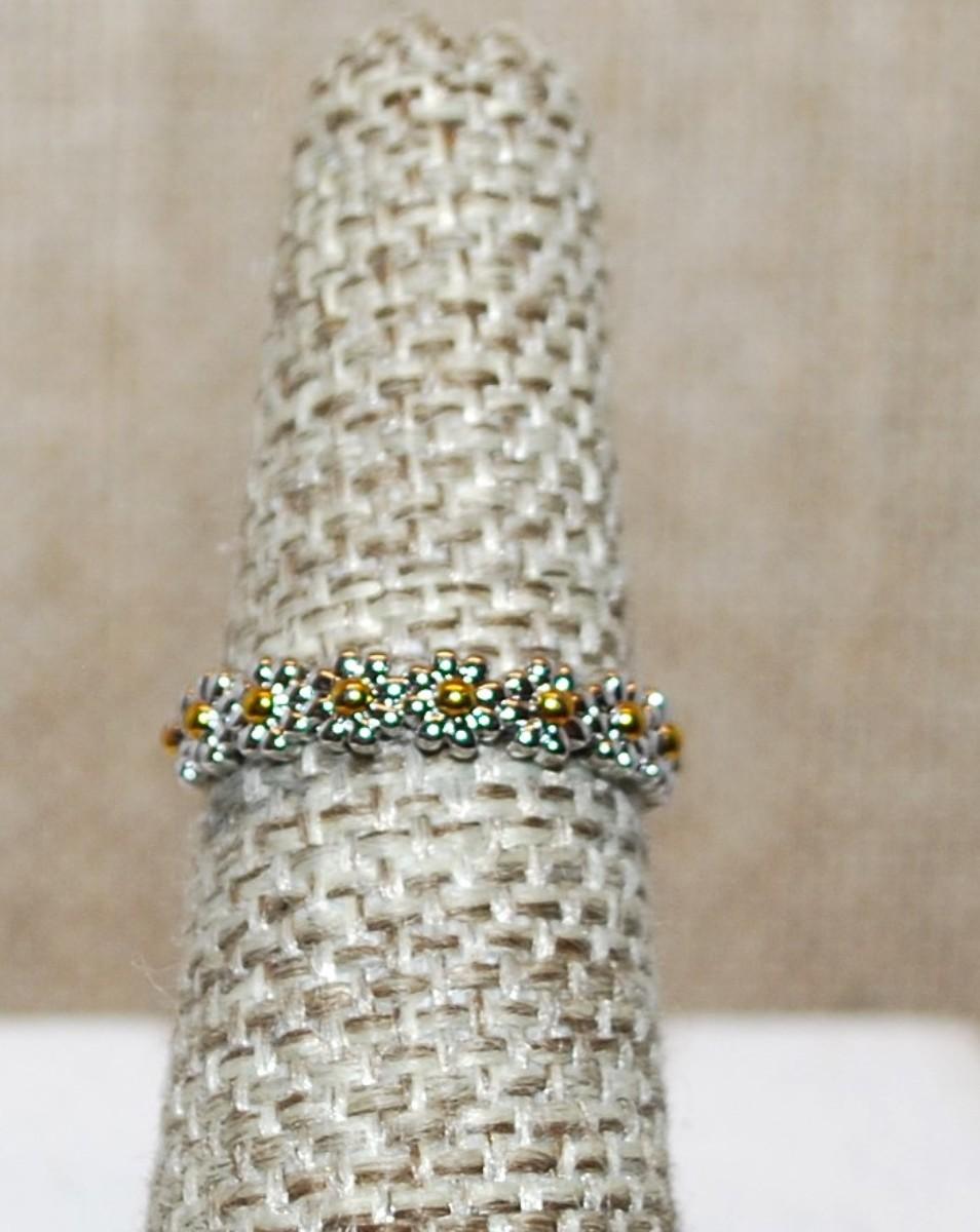 Size 6 Delicate Half Infinity Row of 9 Metal Flowers on a Silver Tone Band (1.9g)