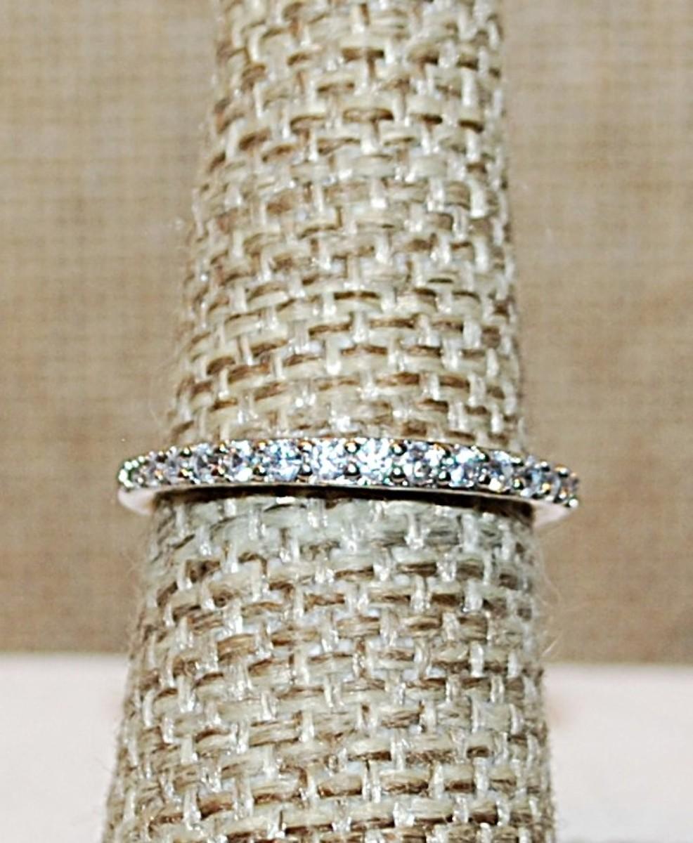 Size 6½ Delicate Half Infinity Single Row of Clear Stones Ring on a Silver Tone Band (1.6g)