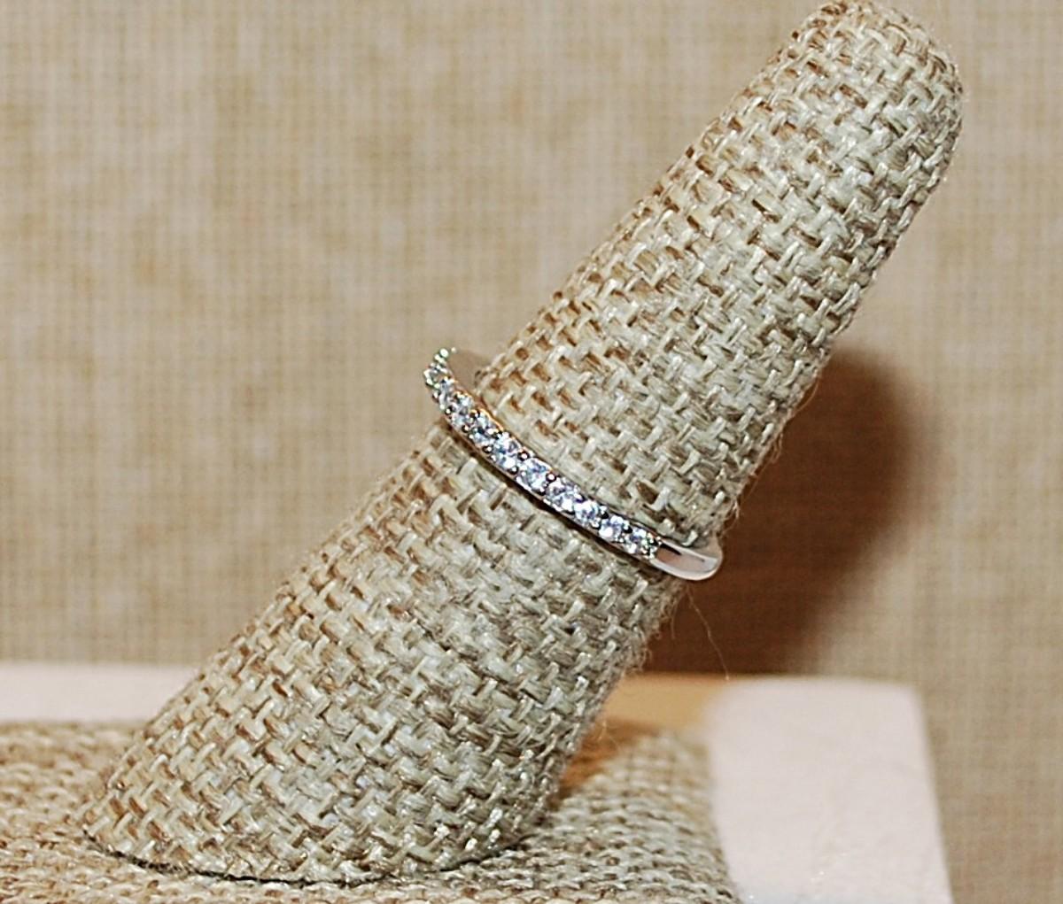 Size 6½ Delicate Half Infinity Single Row of Clear Stones Ring on a Silver Tone Band (1.6g)