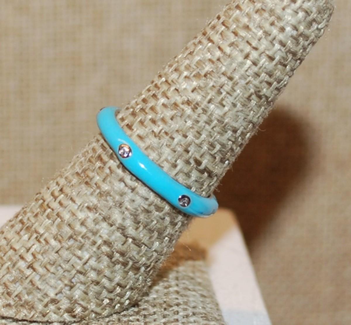Size 6 Delicate ROBIN'S EGG BLUE Enamel Ring with 6 Rhinestones Around the Band (2.0)