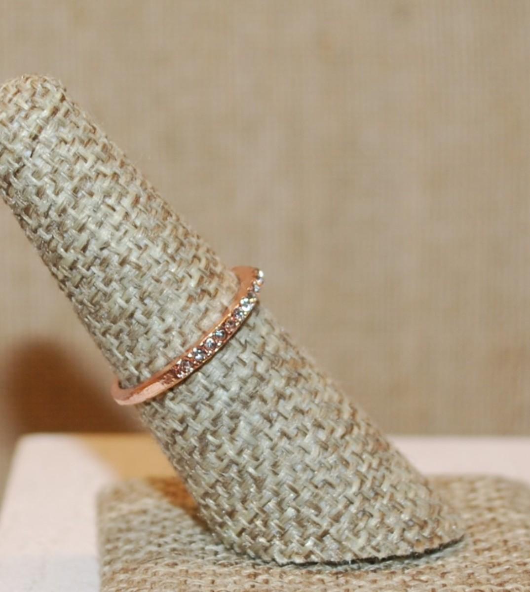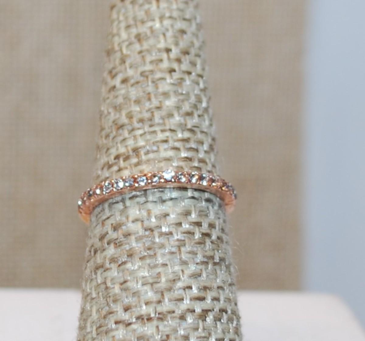Size 6¾ Delicate Rose Gold Half Infinity Ring with Clear Stones Row on a Rose Gold Band (1.1g)
