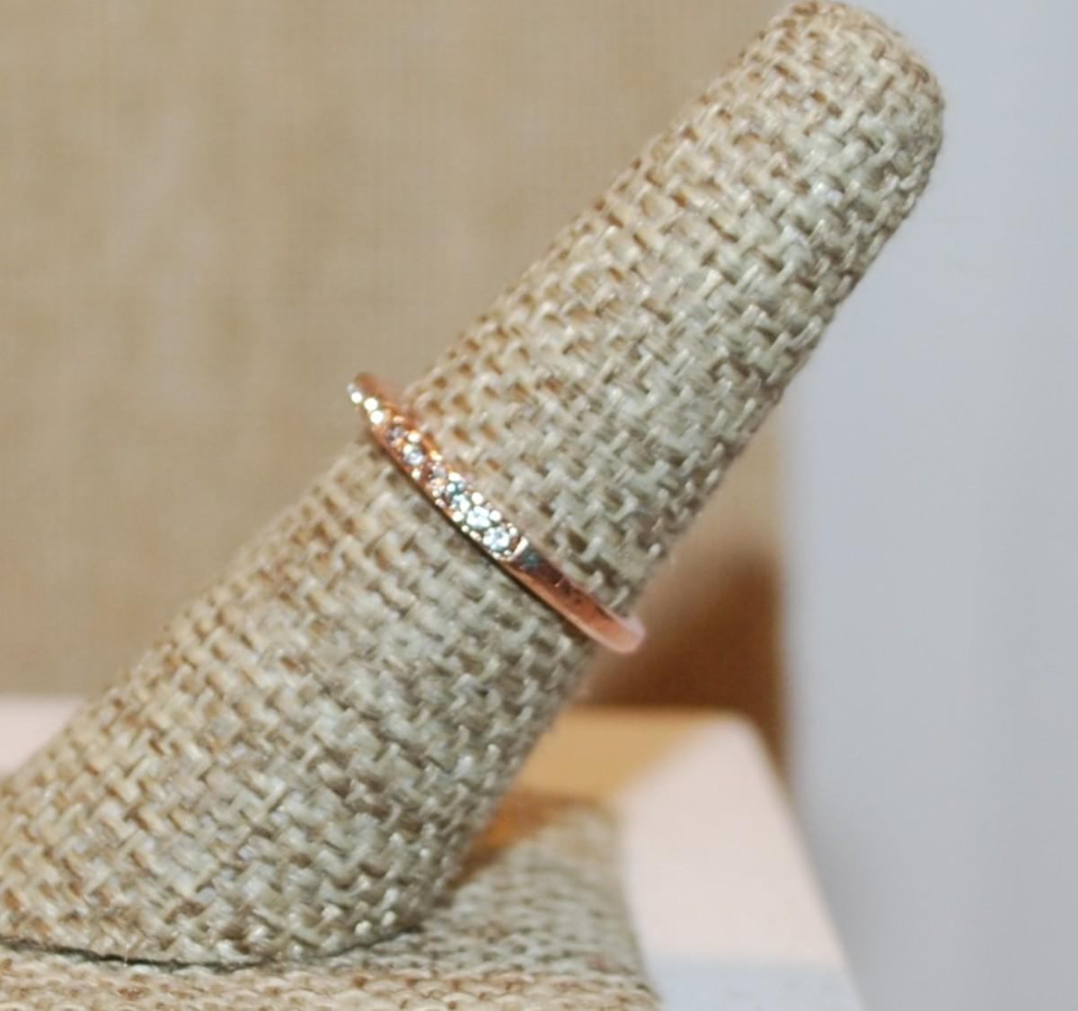 Size 6¾ Delicate Rose Gold Half Infinity Ring with Clear Stones Row on a Rose Gold Band (1.1g)