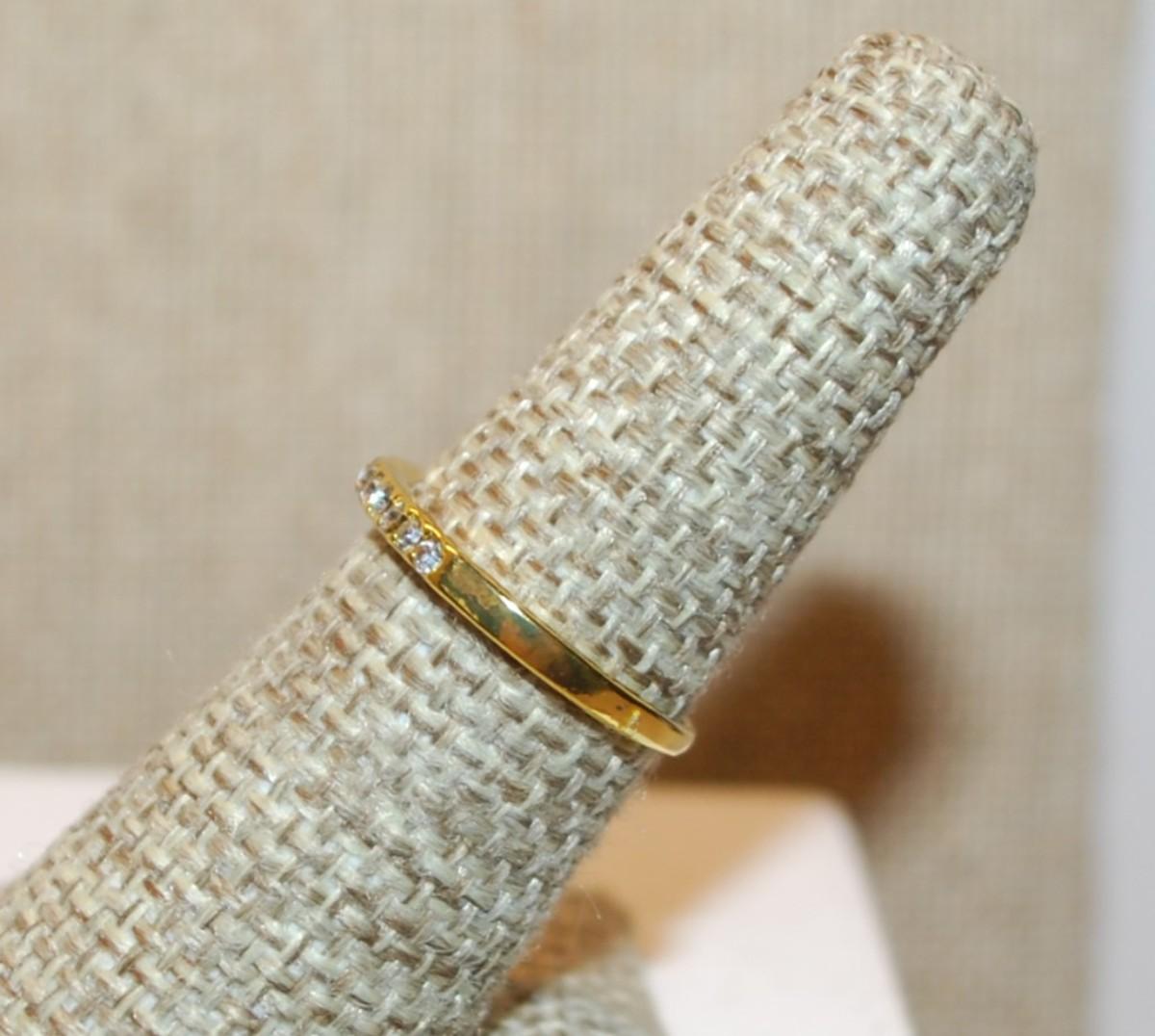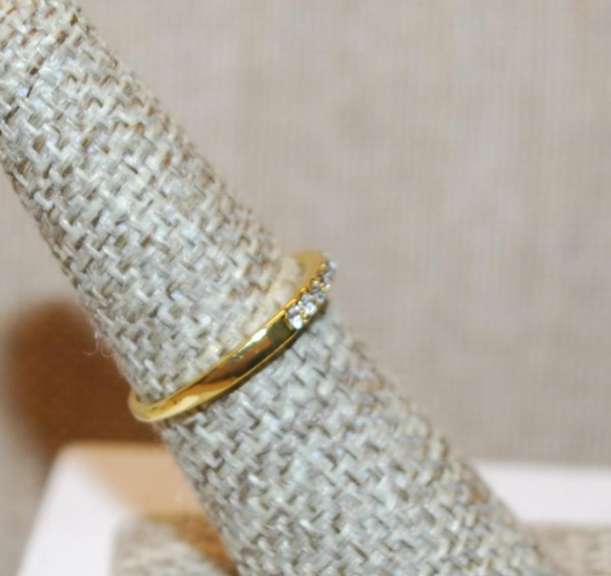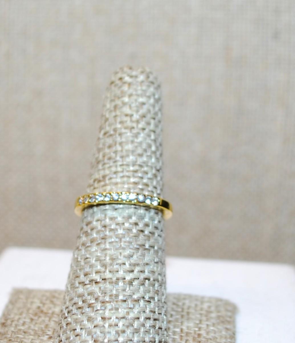 Size 6½ Delicate Row of 10 Clear Stones Ring on a Thin Gold Tone Band (1.4g)