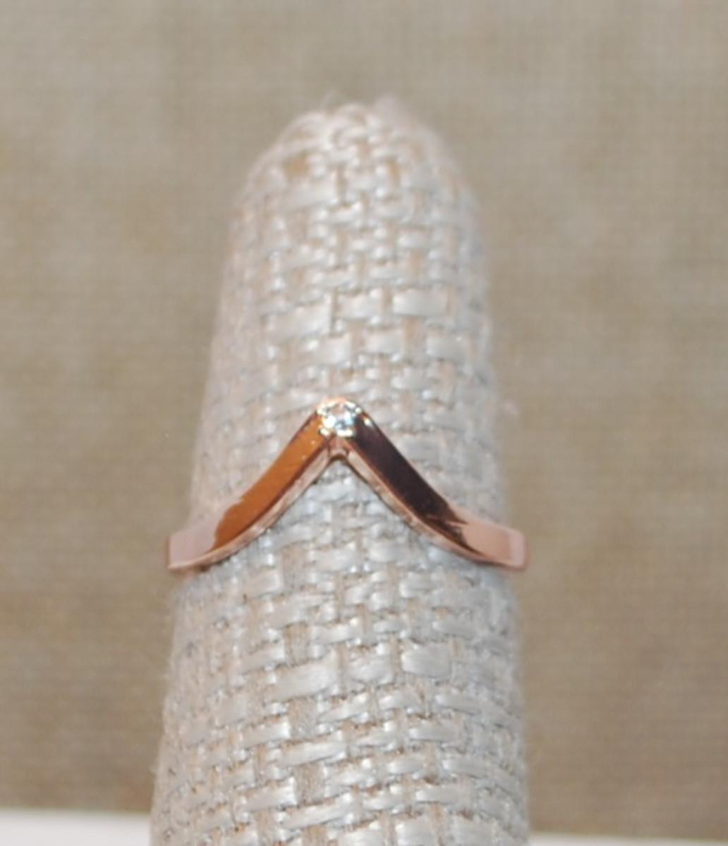 Size 6¼ Delicate Single Stone Ring & Rose Gold "V" and Gold Rose Band (1.3g)