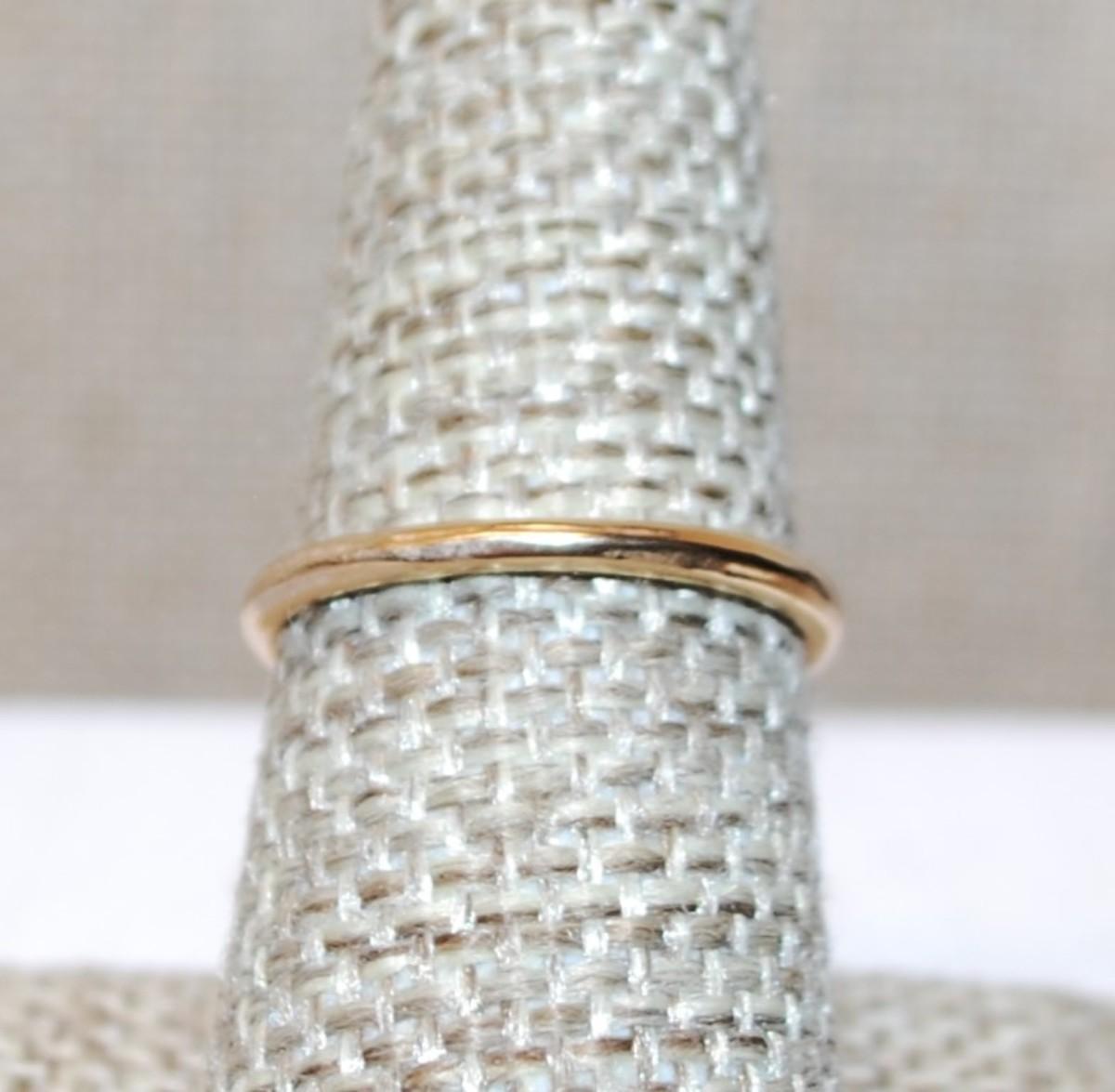 Size 6¼ Delicate Tiny Blue Stone Ring with 2 White Opaque Stone Accents on a Gold Tone Band (1.5g)