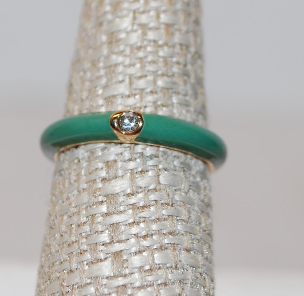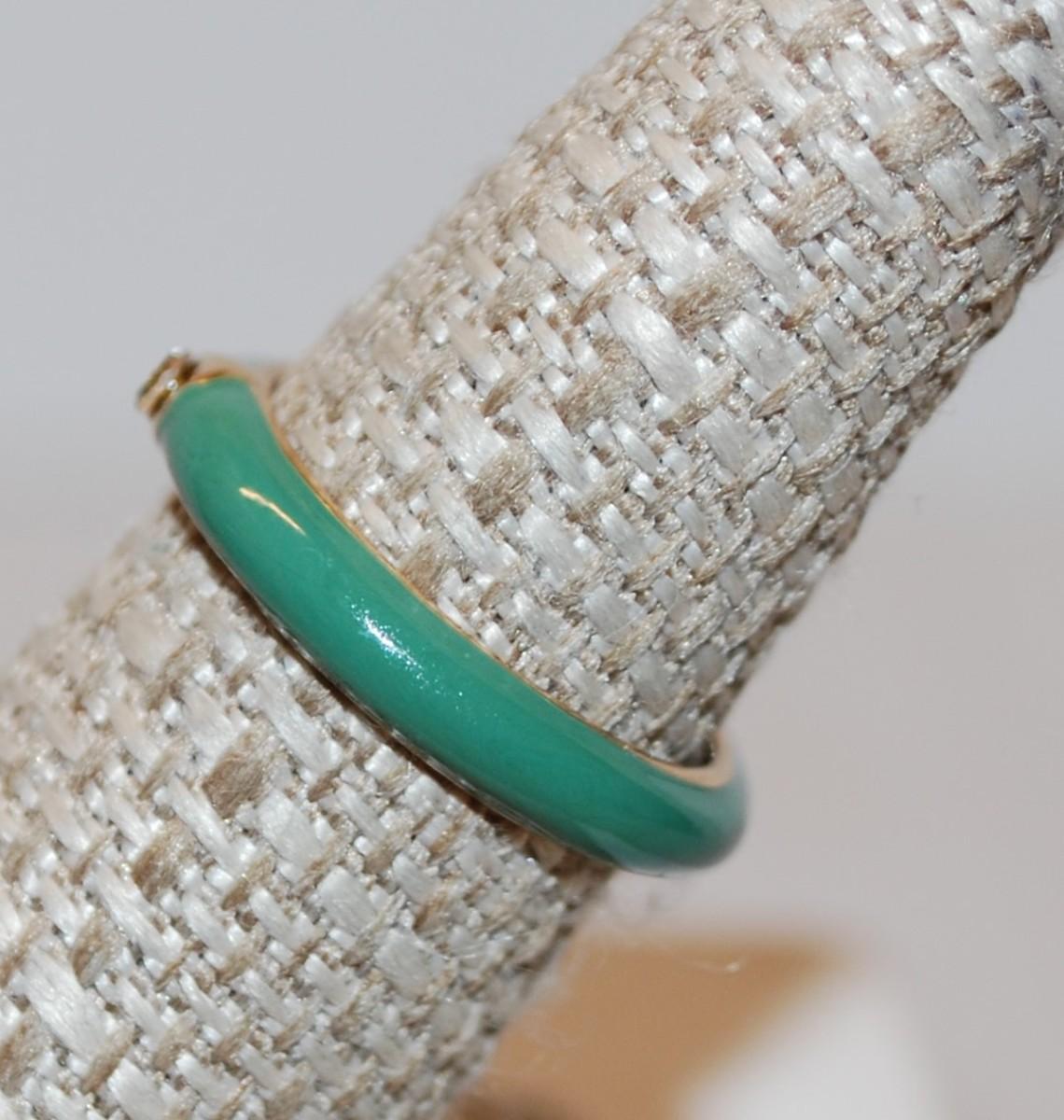 Size 6 FOREST GREEN Enamel Band Ring with Gold-Circled Solitaire Clear Stone (2.0g)