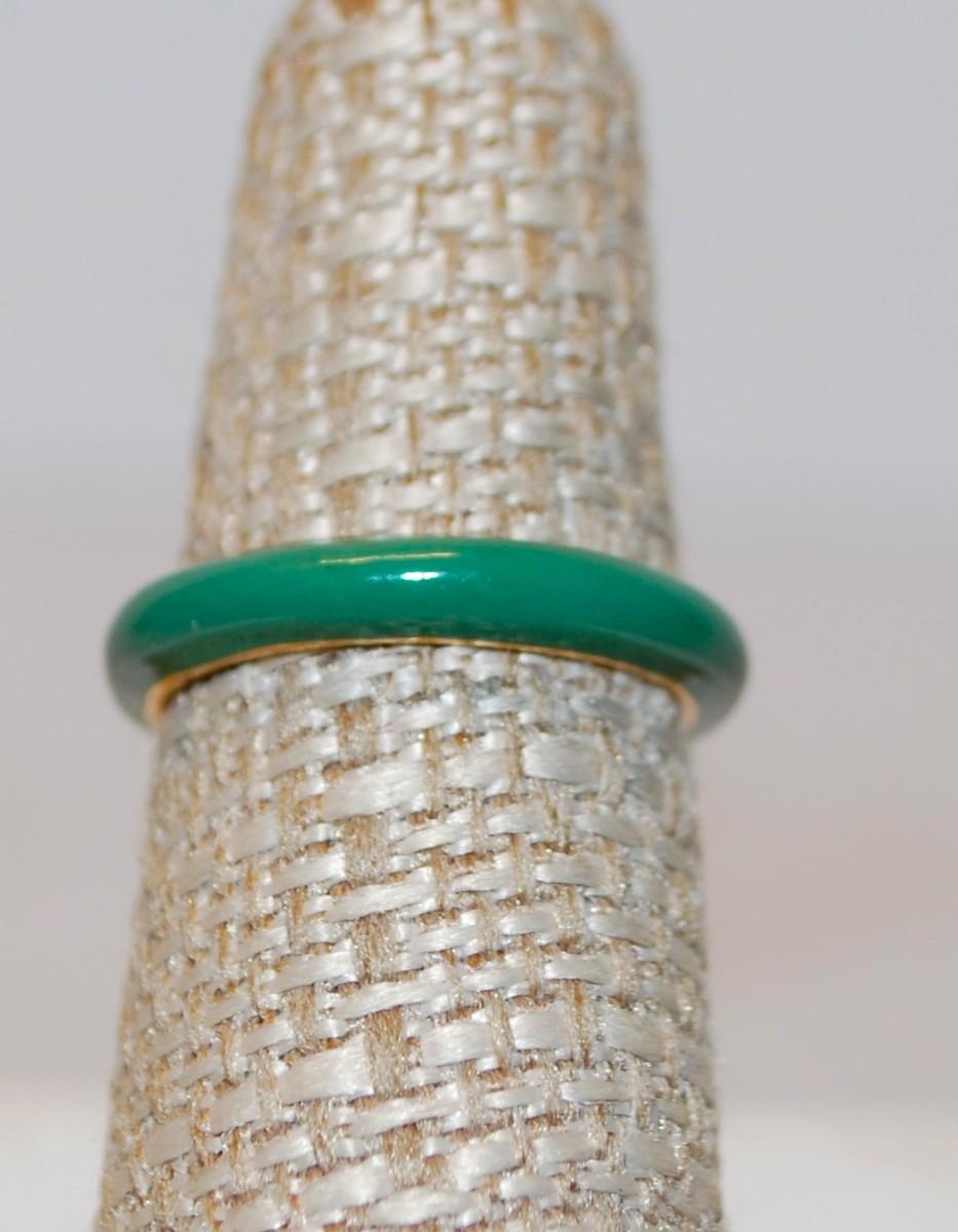 Size 6 FOREST GREEN Enamel Band Ring with Gold-Circled Solitaire Clear Stone (2.0)