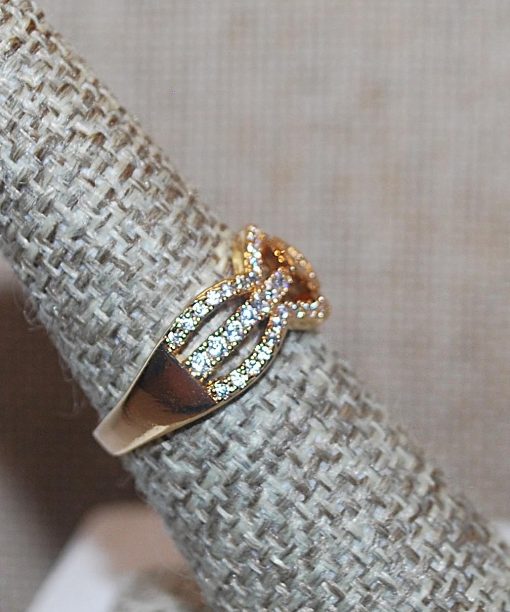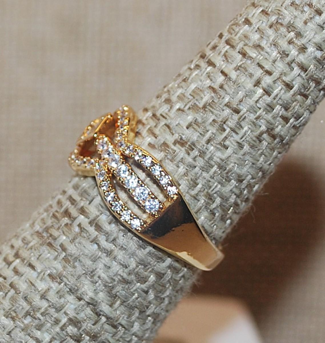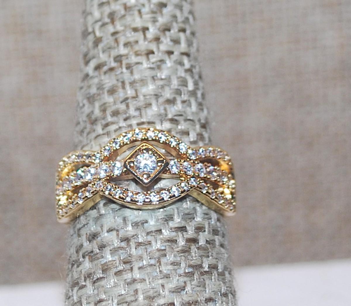 Size 6½ Gold "Diamond Setting" Ring for the Main Stone and 3 Rows of Clear Stones on a Gold Tone Band (3.2g)