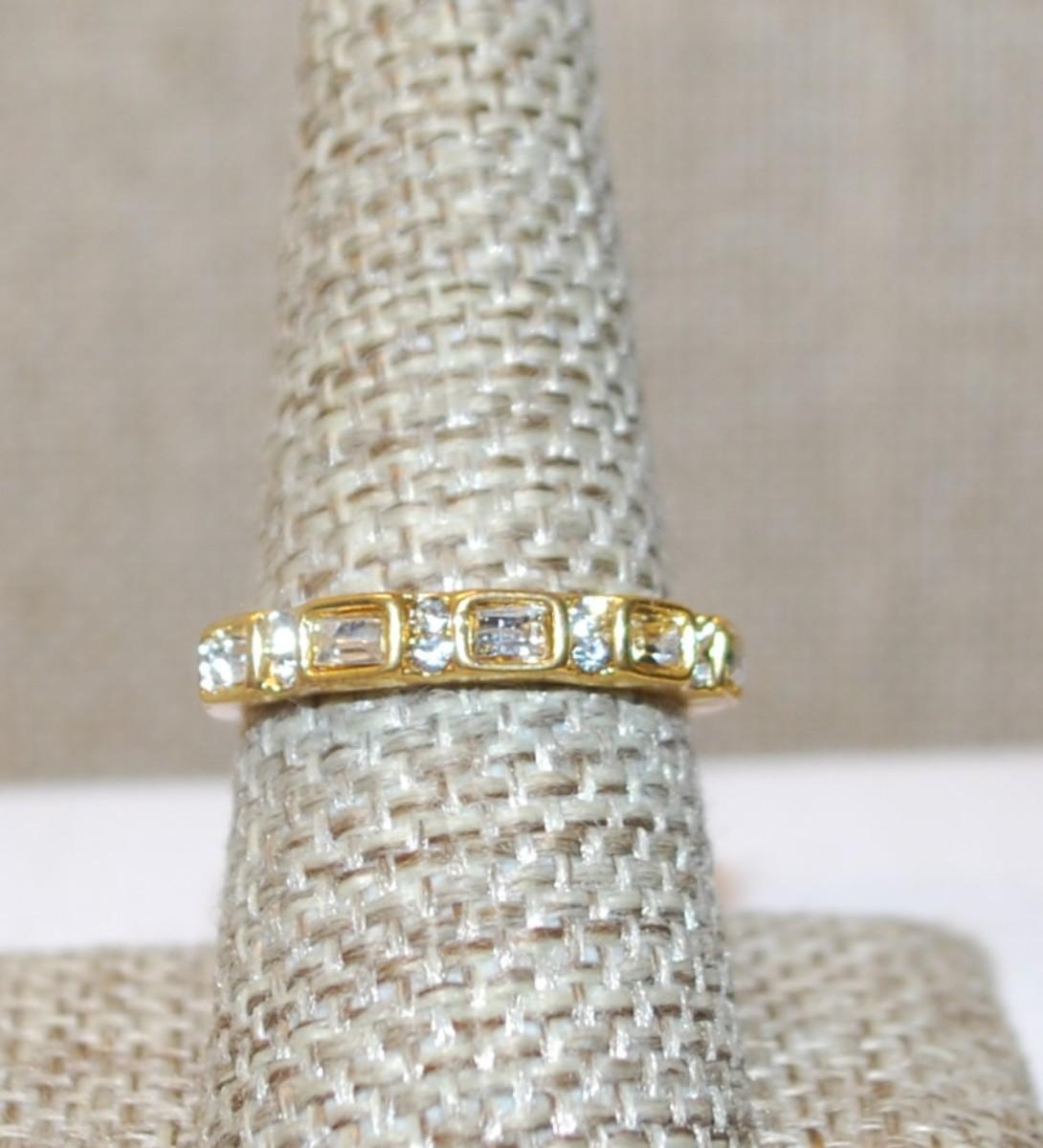 Size 6½ "Gold-Lined" Set of 5 Square Stones Ring with Clear Stones In Between on a Gold Tone Band (2.2g)