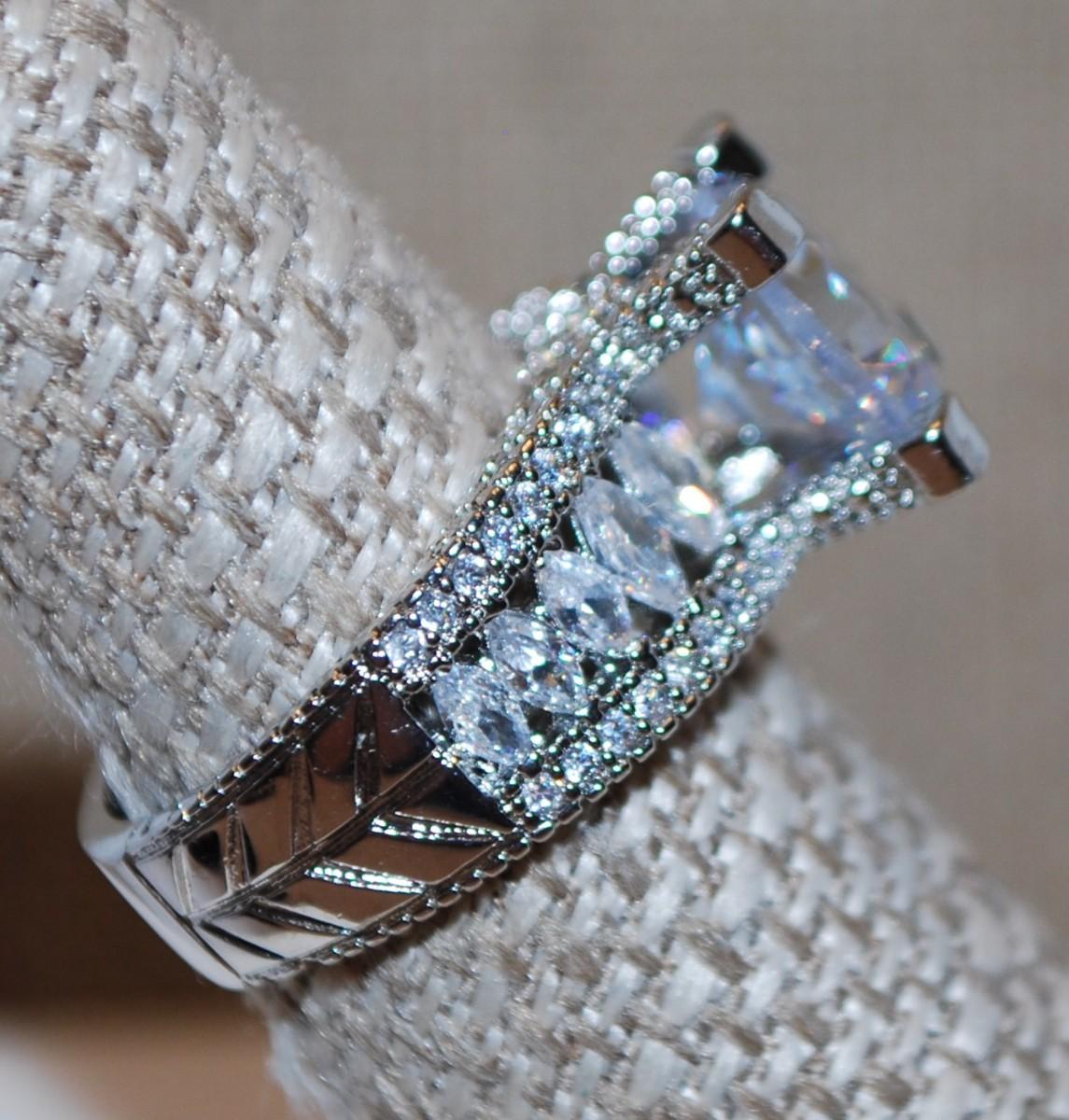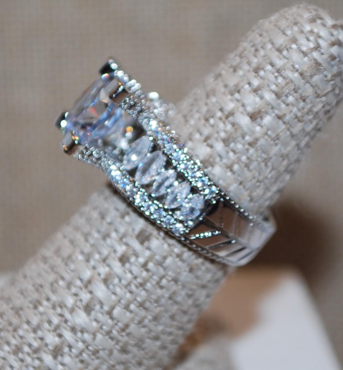 Size 6¾ "Highrise" Large Round Clear Stone Ring in a 4-Point Setting with Accents Adorned Silver Tone Band (7.4g)