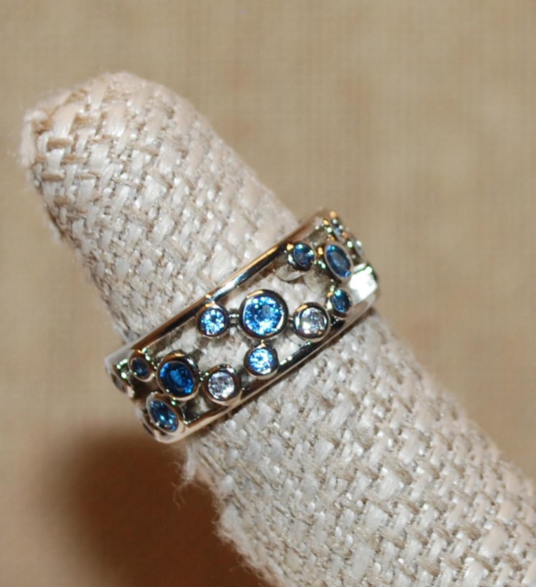 Size 6 Hollowed Infinity Style Setting with Light Blue & Clear Stone "Circles" on a Silver Tone Band (4.5g)