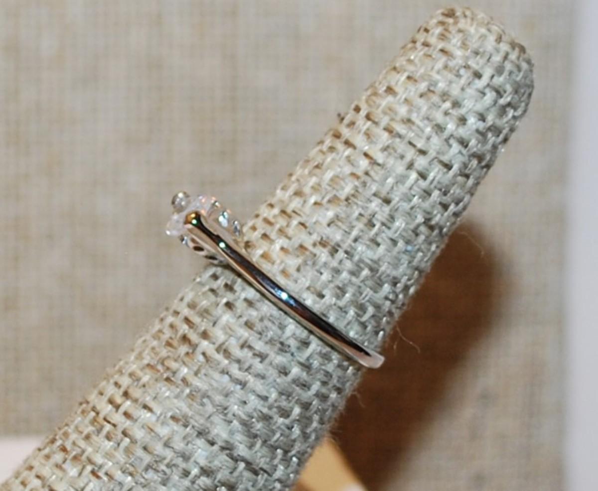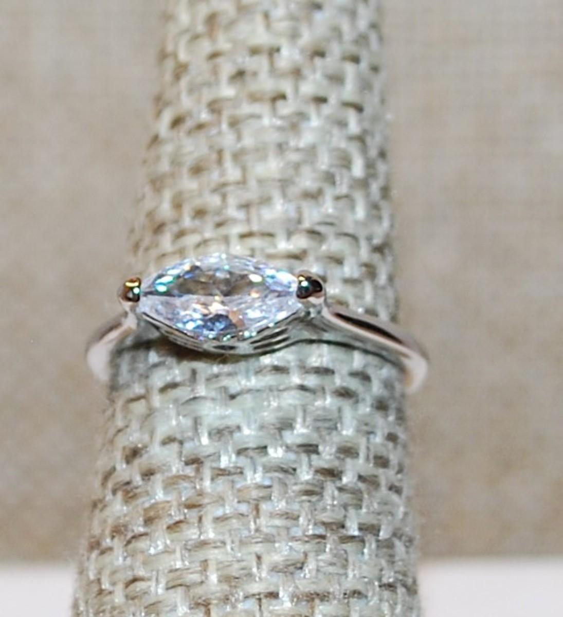 Size 6 Horizontal Clear MARQUISE Cut Single Stone Ring on a Silver Tone Band (1.9g)
