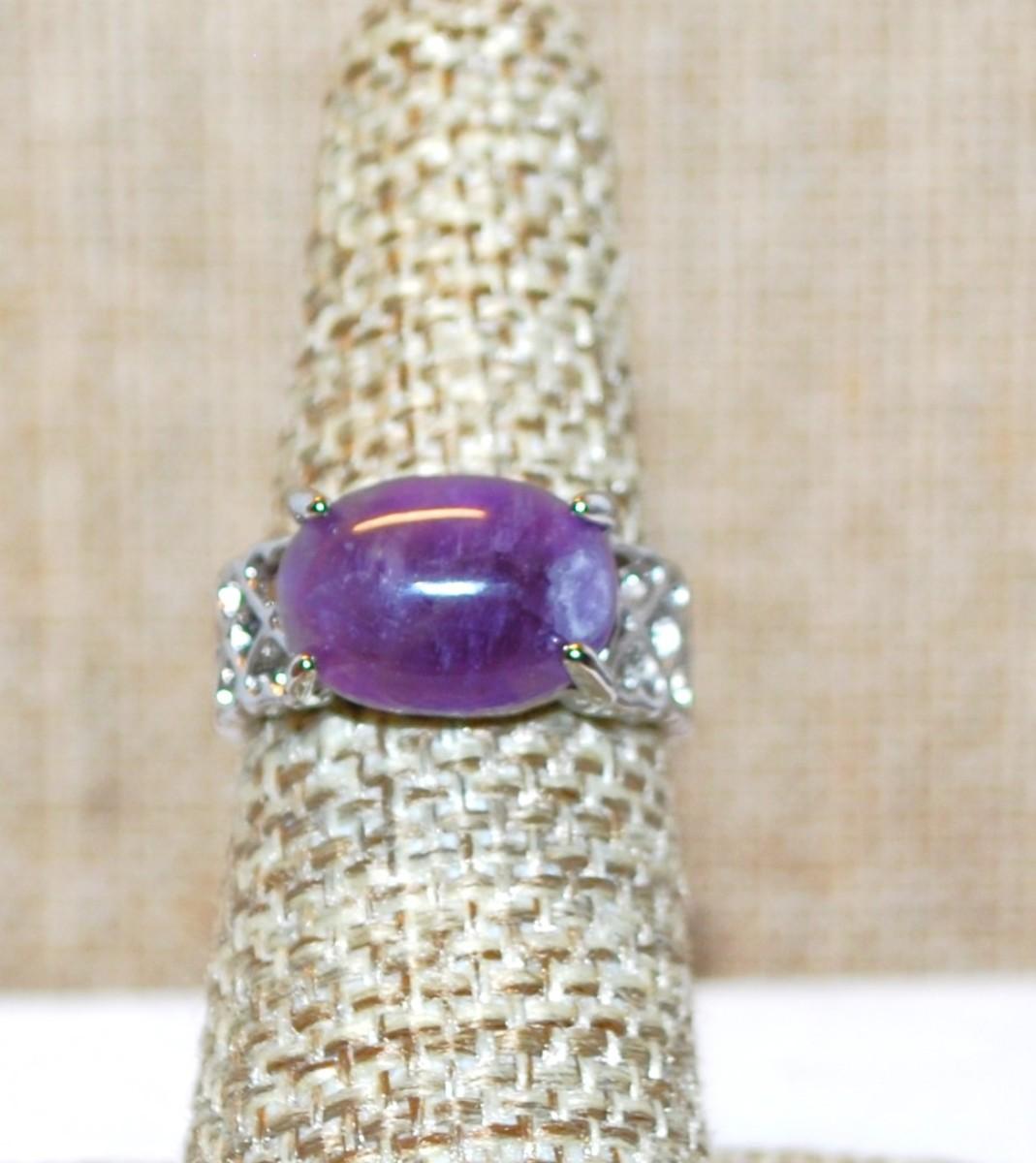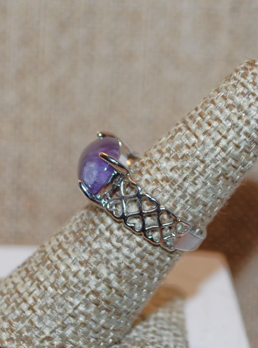 Size 6¾ Horizontal Purple Amethyst Stone Ring on a Criss-Cross Silver Tone Band (3.7g)