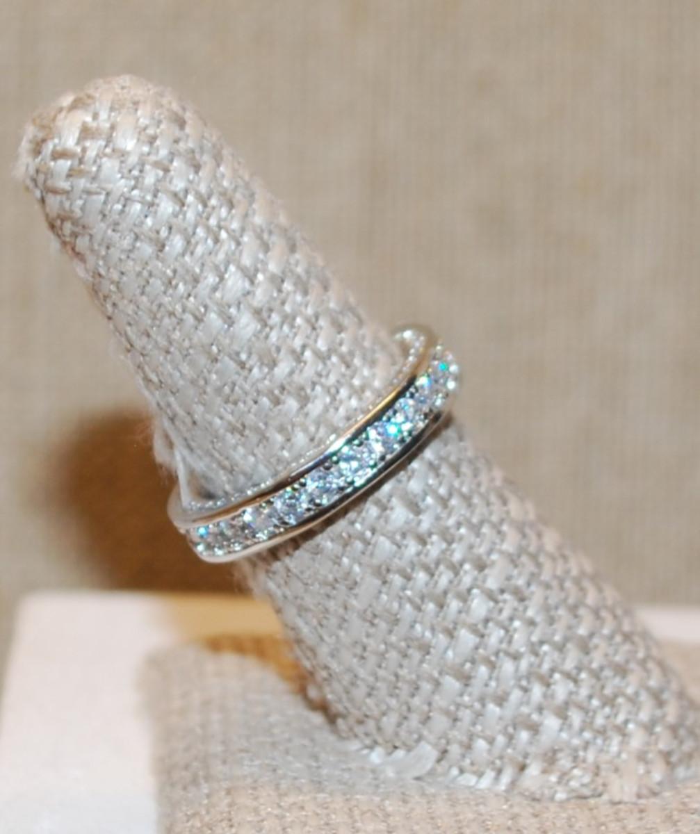 Size 6¼ Infinity Style Ring with Full Row of Round Clear Stones on a Silver Tone Band (4.4g)