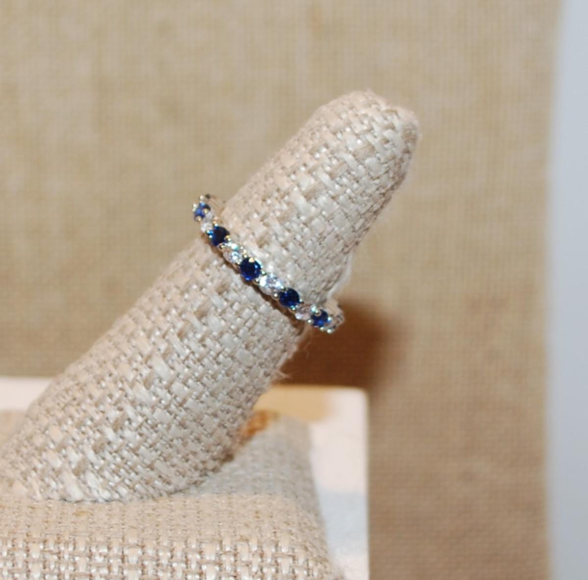 Size 6¼ Infinity Style Ring with Blue & Clear Alternating Stones on a Silver Tone Band (2.3g)