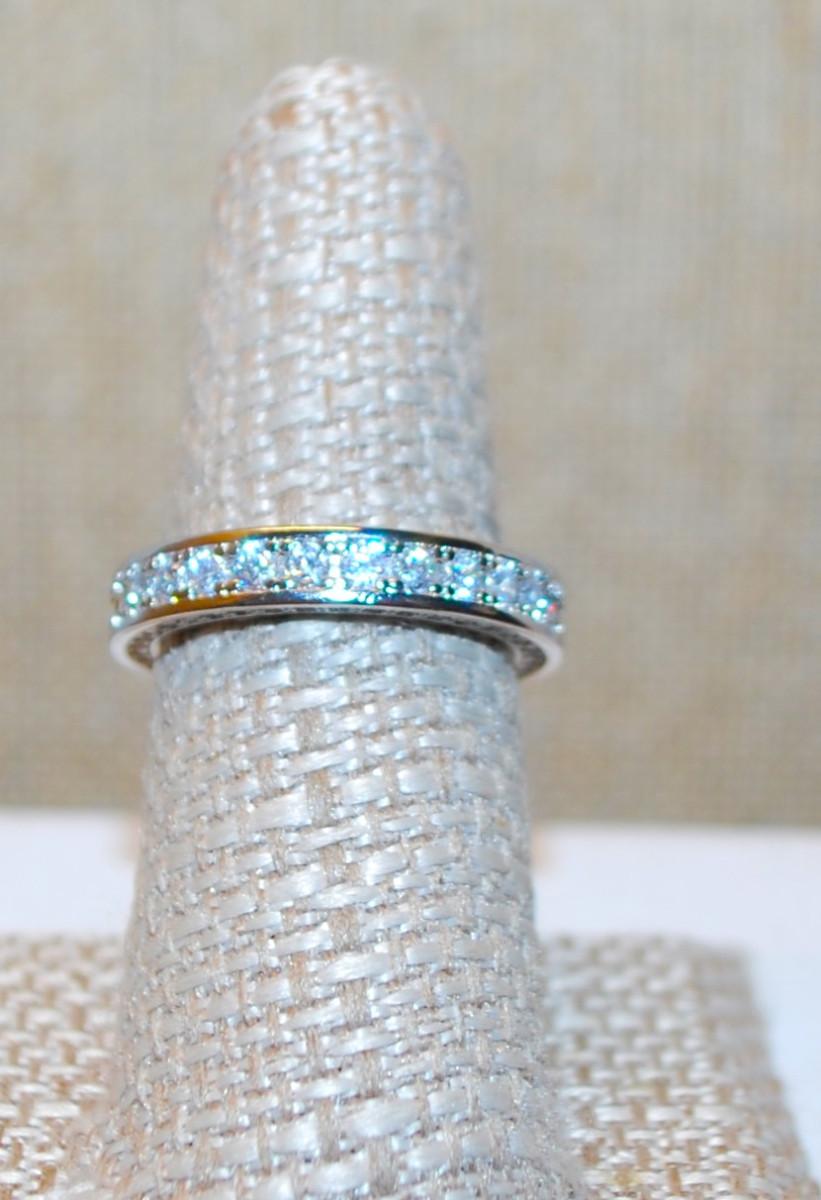 Size 6¼ Infinity Style Ring with Full Row of Round Clear Stones on a Silver Tone Band (4.4g)