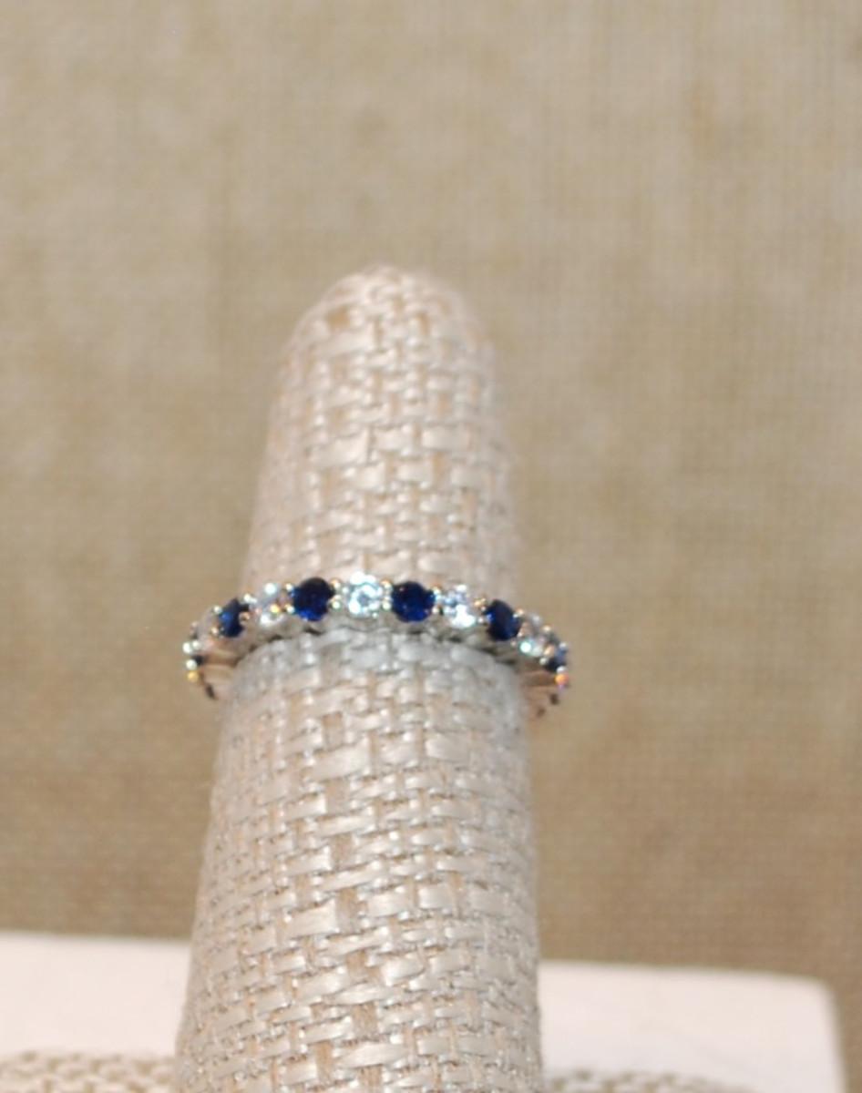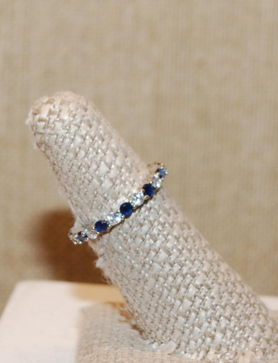 Size 6¼ Infinity Style Ring with Blue & Clear Alternating Stones on a Silver Tone Band (2.3g)