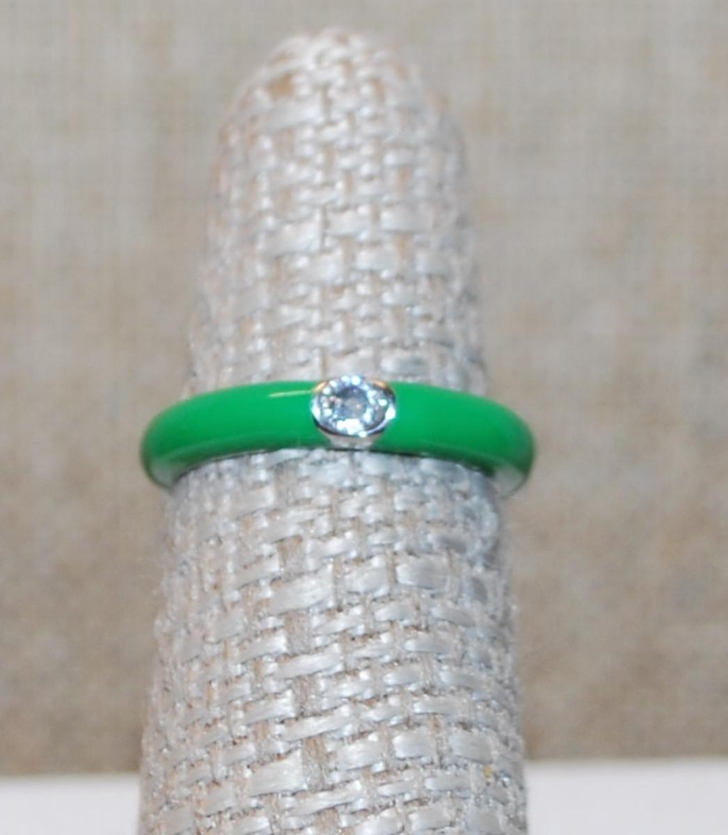 Size 6 Infinity Styled LIME GREEN Ring with a Silver Color Circle Around a Single Clear Stone (2.2g)